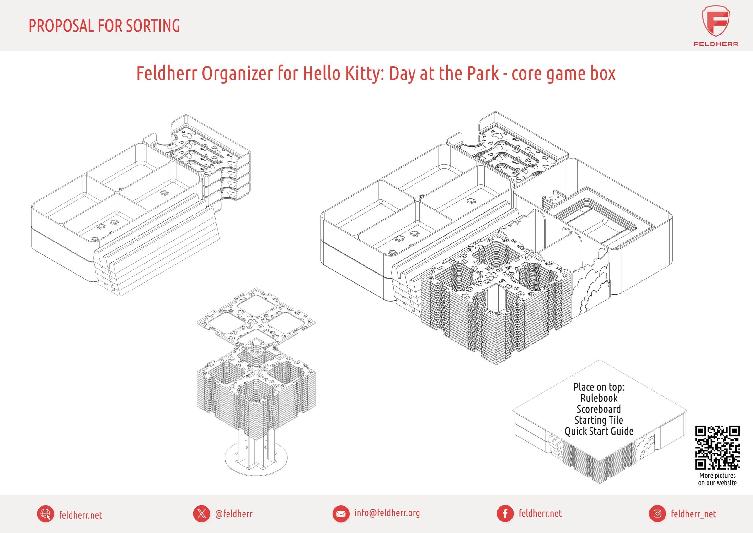 Whether it's an adventure at the amusement park or a relaxing break on the lawn, every playday becomes an experience with Hello Kitty and her friends. To keep things neat while you play, our Feldherr Organizer Insert brings order to the box and the table - for a better overview, secure storage, and easy-peasy playtime fun.