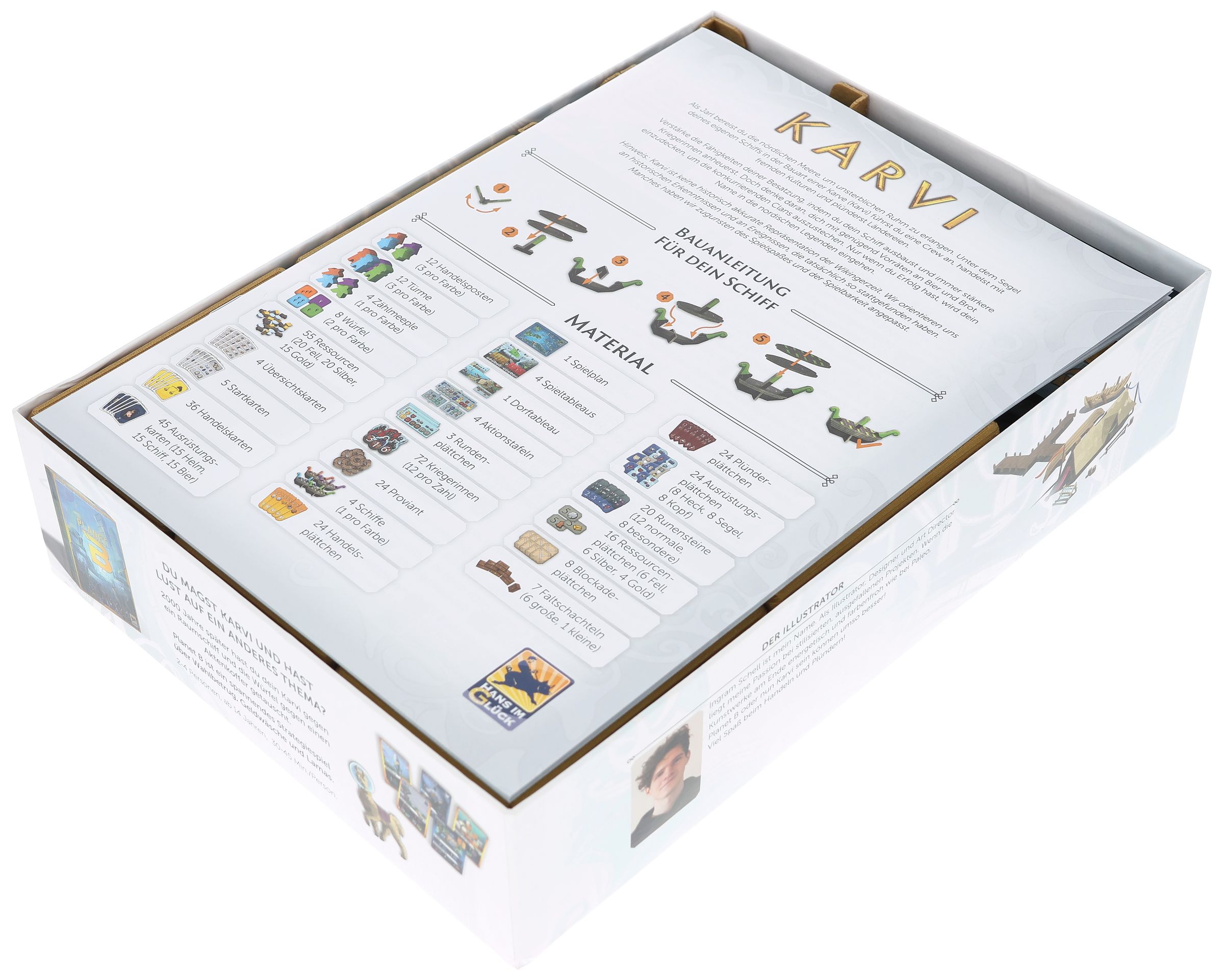 The Vikings set sail to explore new lands and conquer riches. The Feldherr Organizer Insert for the Karvi core game box helps you to optimize your game setup and store your materials safely, space-savingly and clearly arranged.