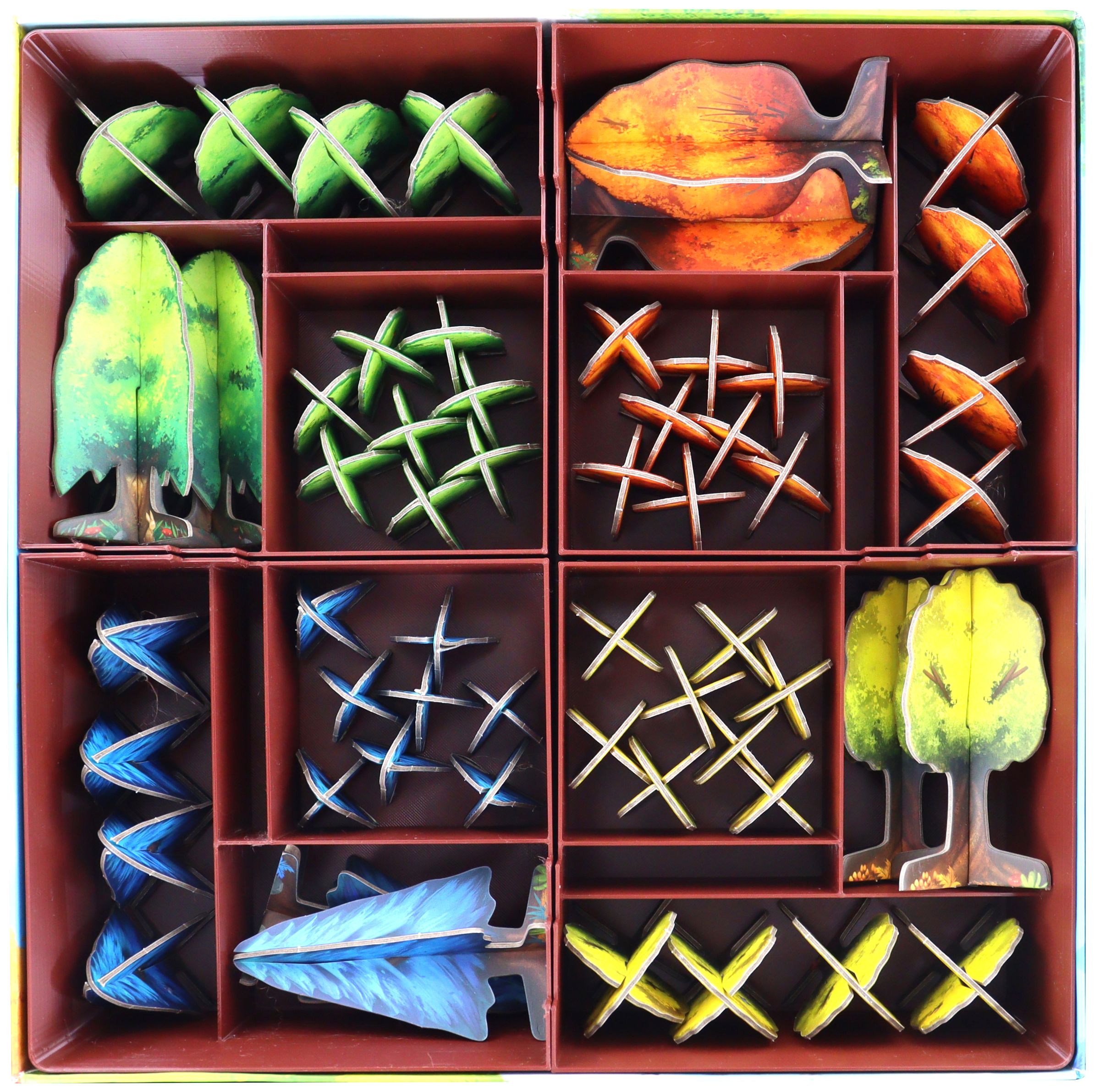 - Keeps the box and tabletop tidy. Each player gets their tree nursery with the trees in their game color.