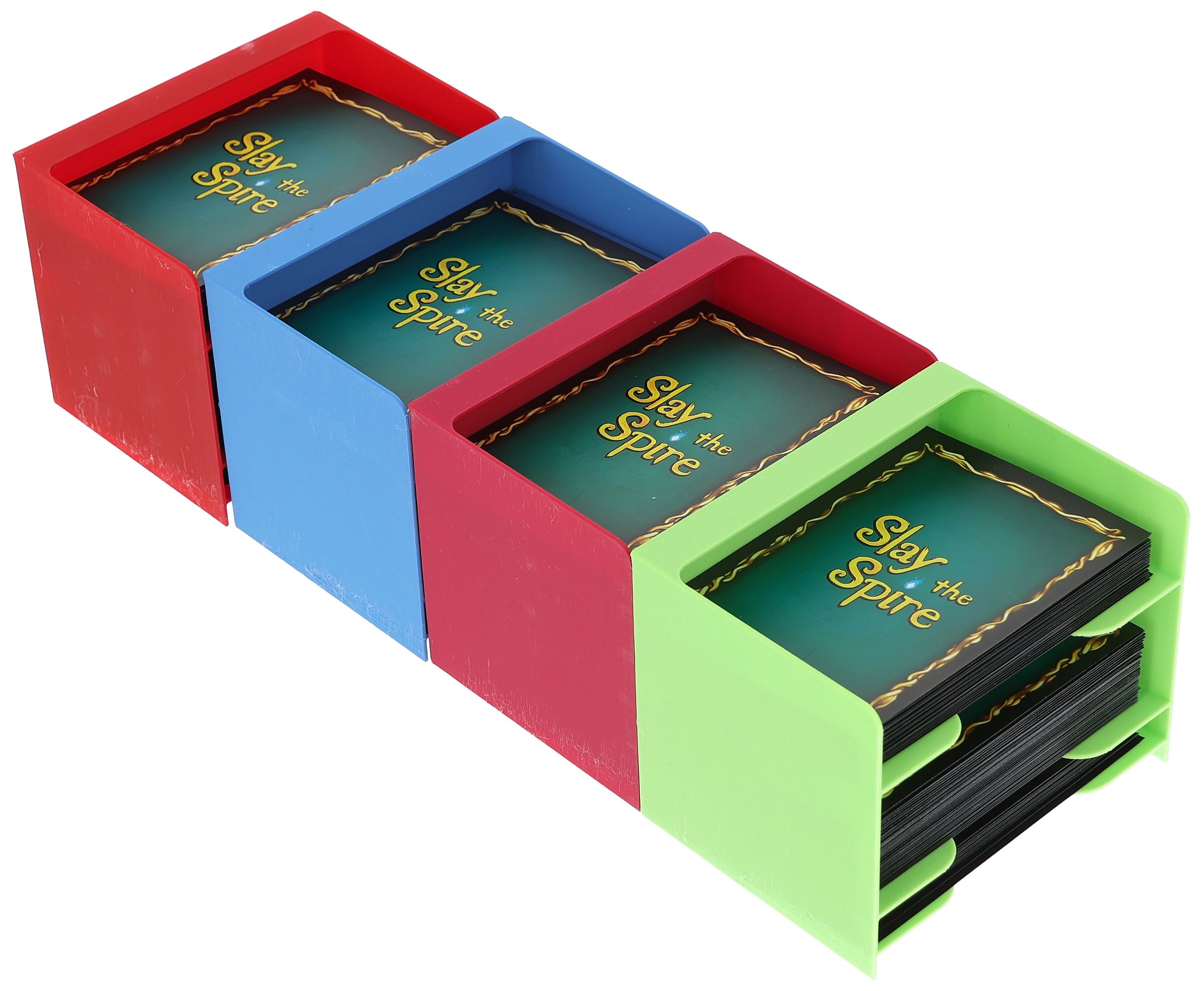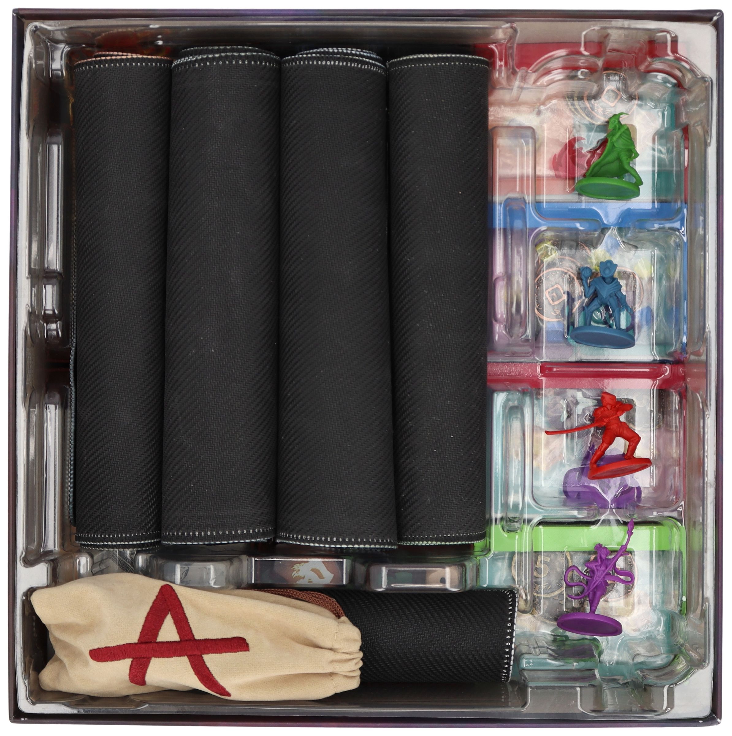 • You can keep all unlockable cards neatly sorted in the large card holder. Of course, the player trays offer additional space for the cards that are unlocked during the course of the game.