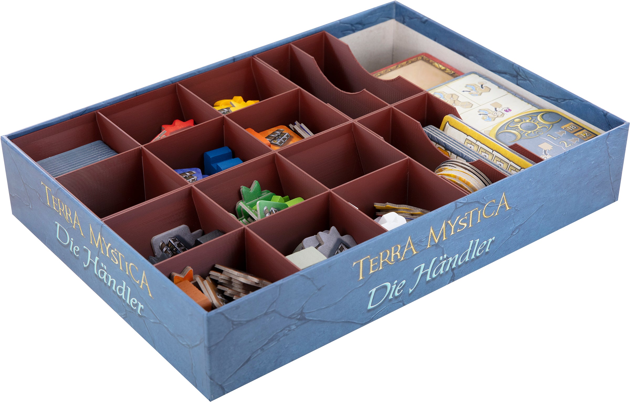 • The Organizer provides space for the game materials of the Terra Mystica expansion “Merchants of the Seas” published by z-games.
