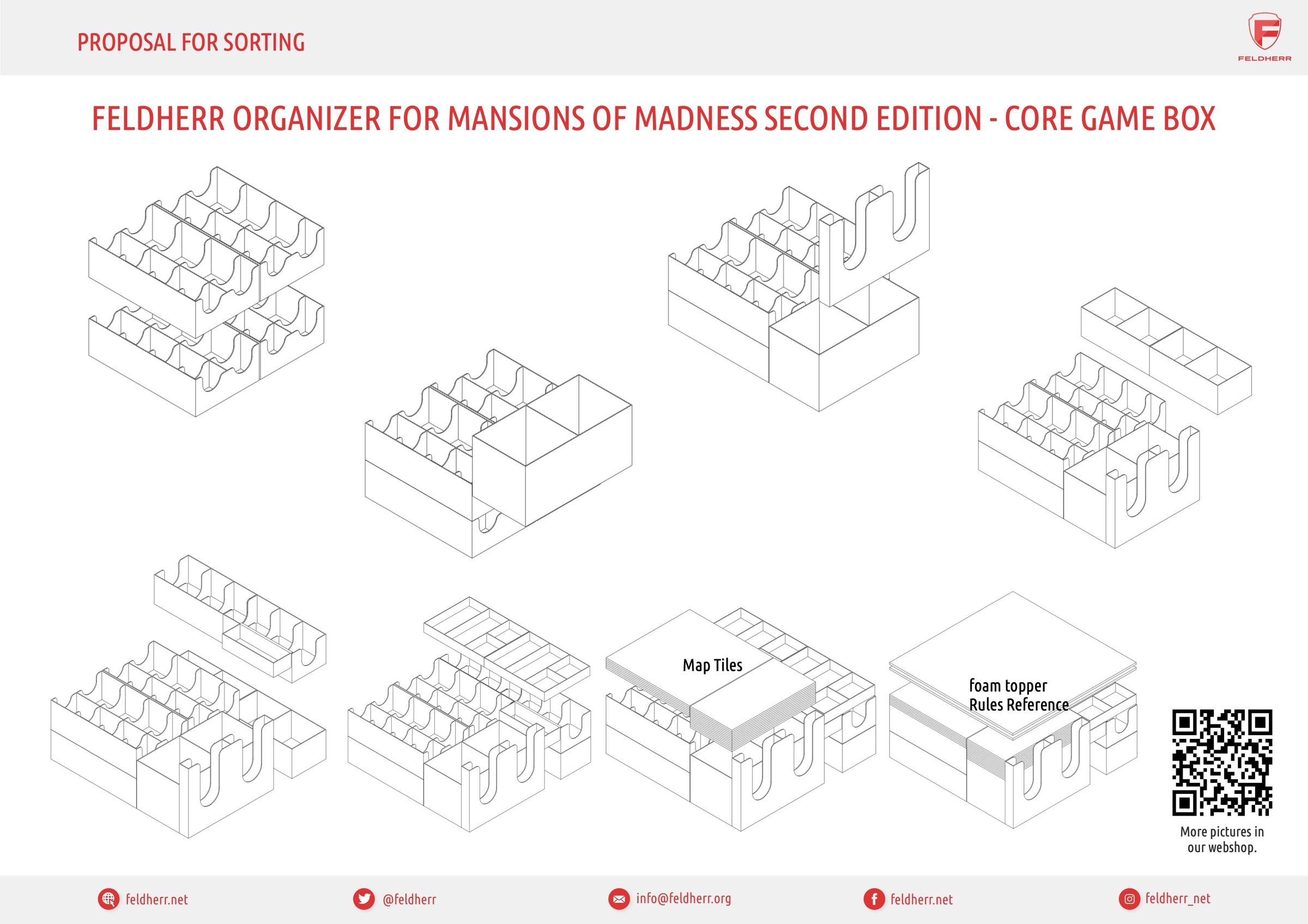 - The Organizer set provides space for the entire game materials and miniatures from the "Mansions of Madness: Second Edition" core game.