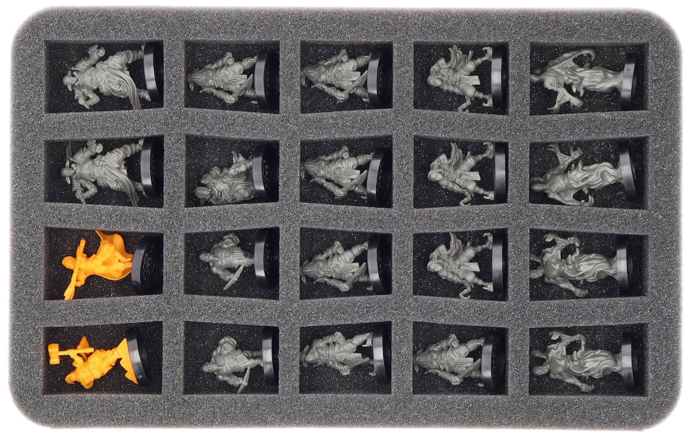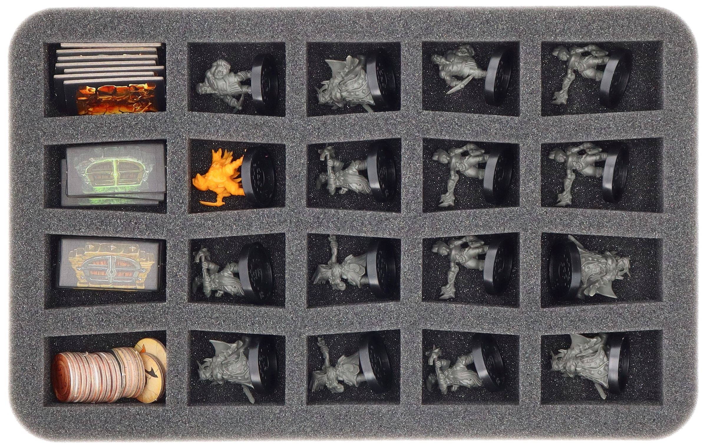 • 2 Half-Size foam trays, each with 20 compartments for small miniatures + tokens (HS035C5BO)