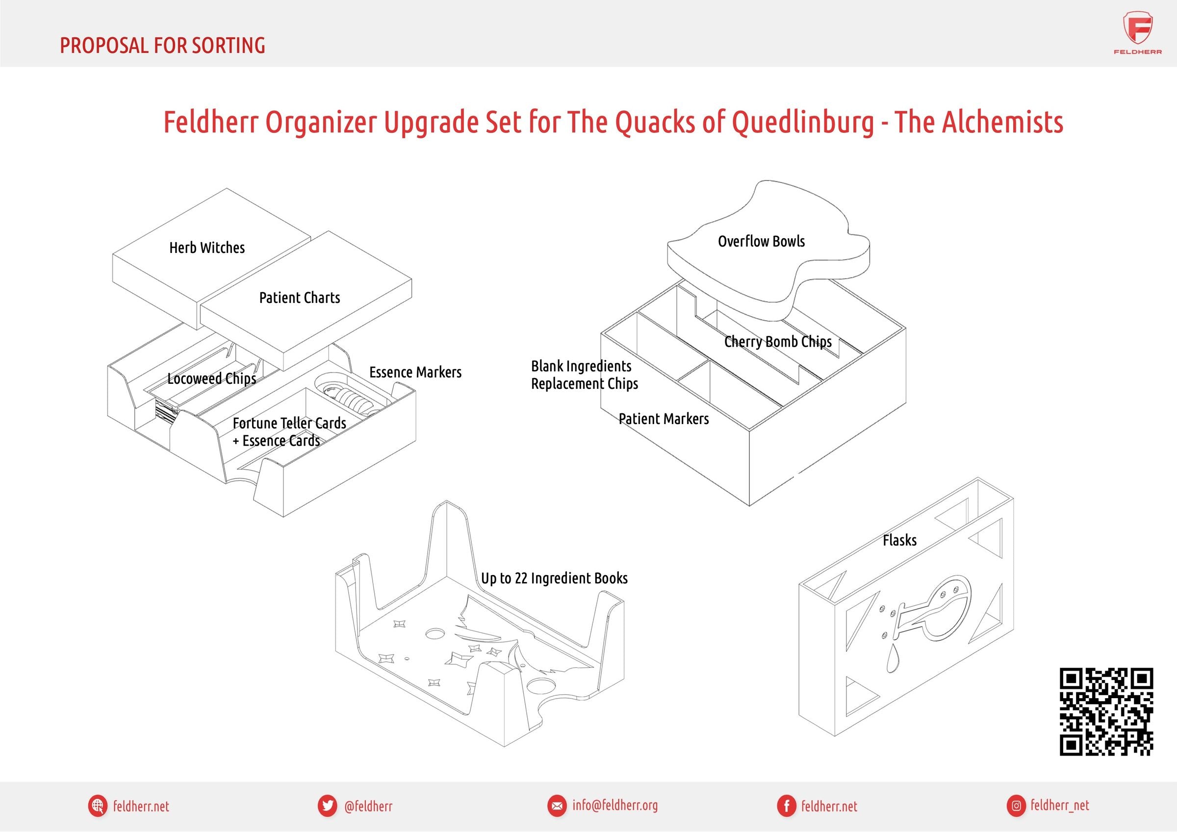 - Feldherr Organizer (ORG005) + Upgrade Set provide space for all the game material of the core game “The Quacks of Quedlinburg” and the expansions “The Herb Witches” and “The Alchemists”.