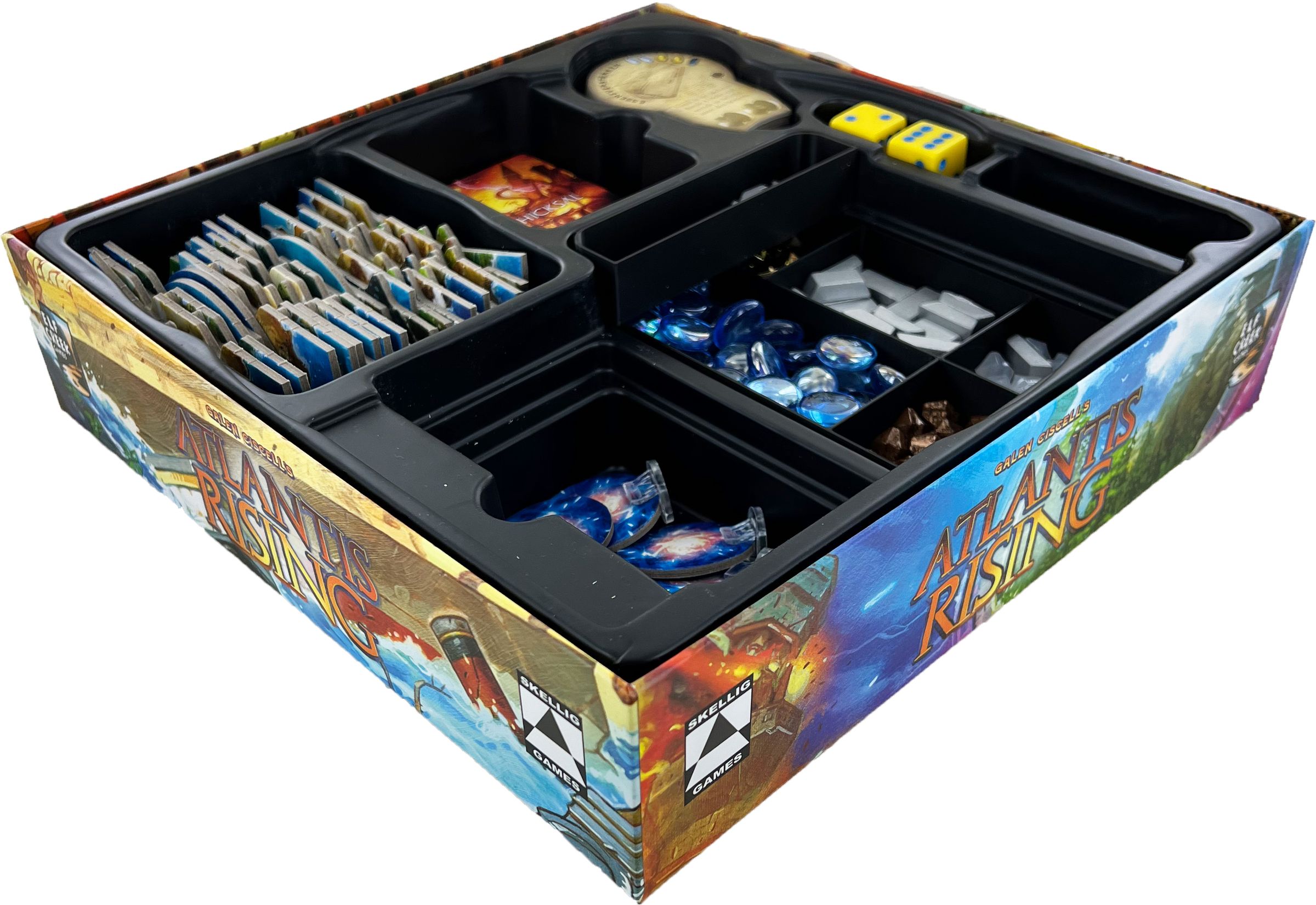- The Organizer Inserts fit into the original board game box of the “Atlantis Rising” core game.