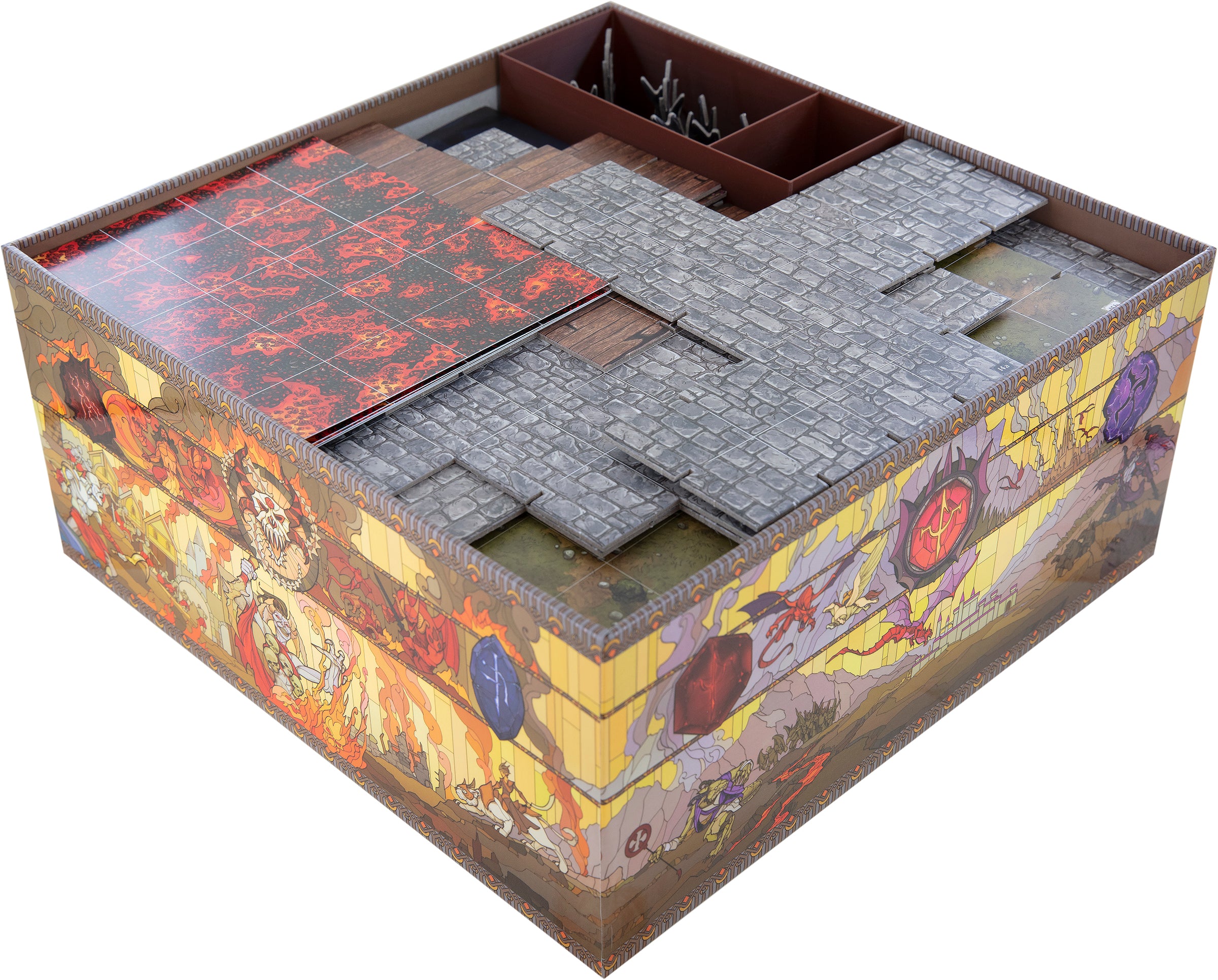 - The set provides space for all 47 terrain pieces and the complete accessories of the base game.