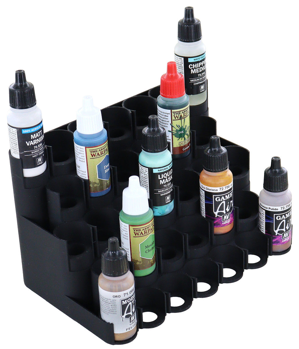 - The Feldherr Paint Rack fits color bottles with a 25 mm diameter from Vallejo, Armypainter, Scalecolor, and other manufacturers.