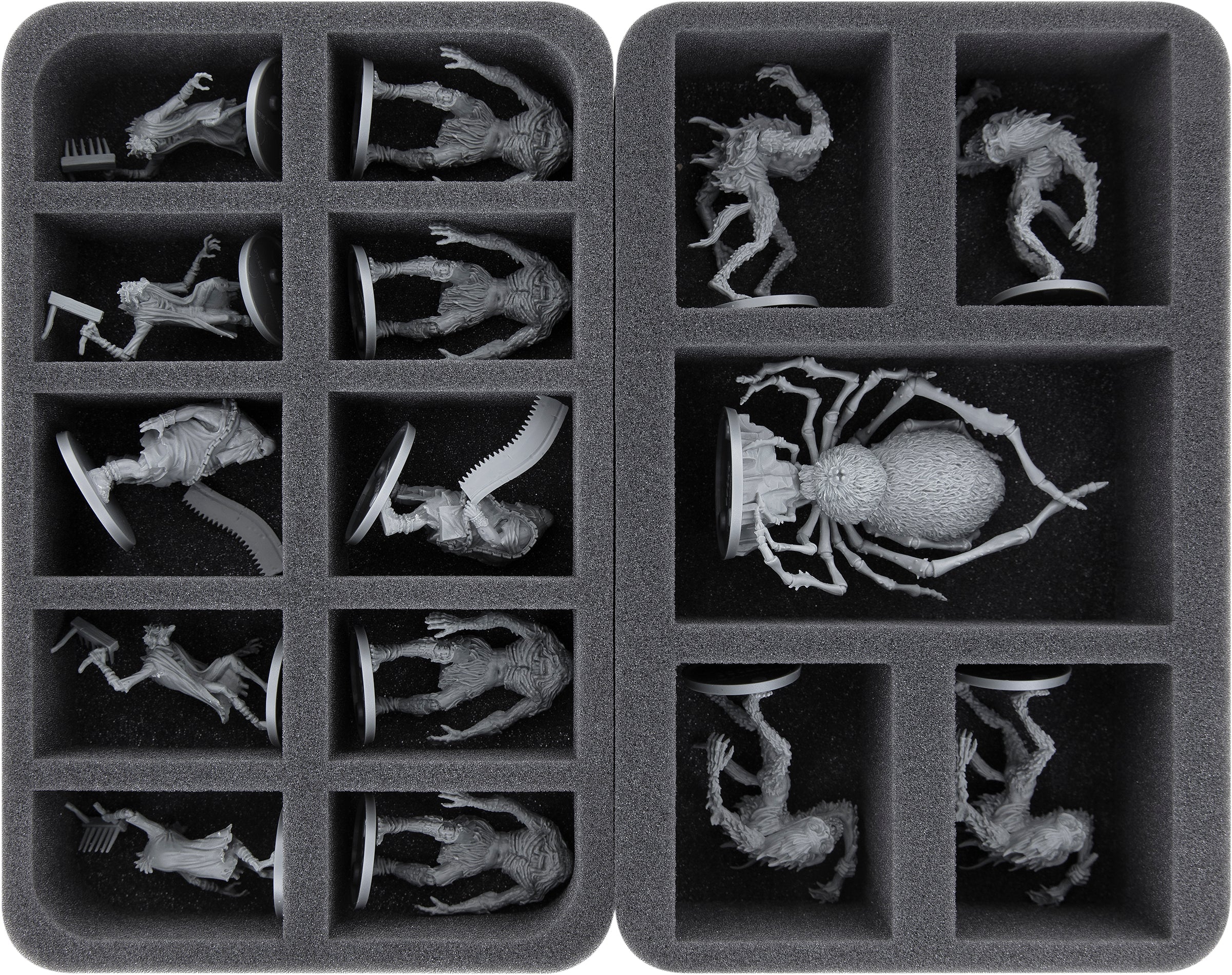 • 2 Half-Size foam trays for 10 miniatures each (HSMFAZ070BO)