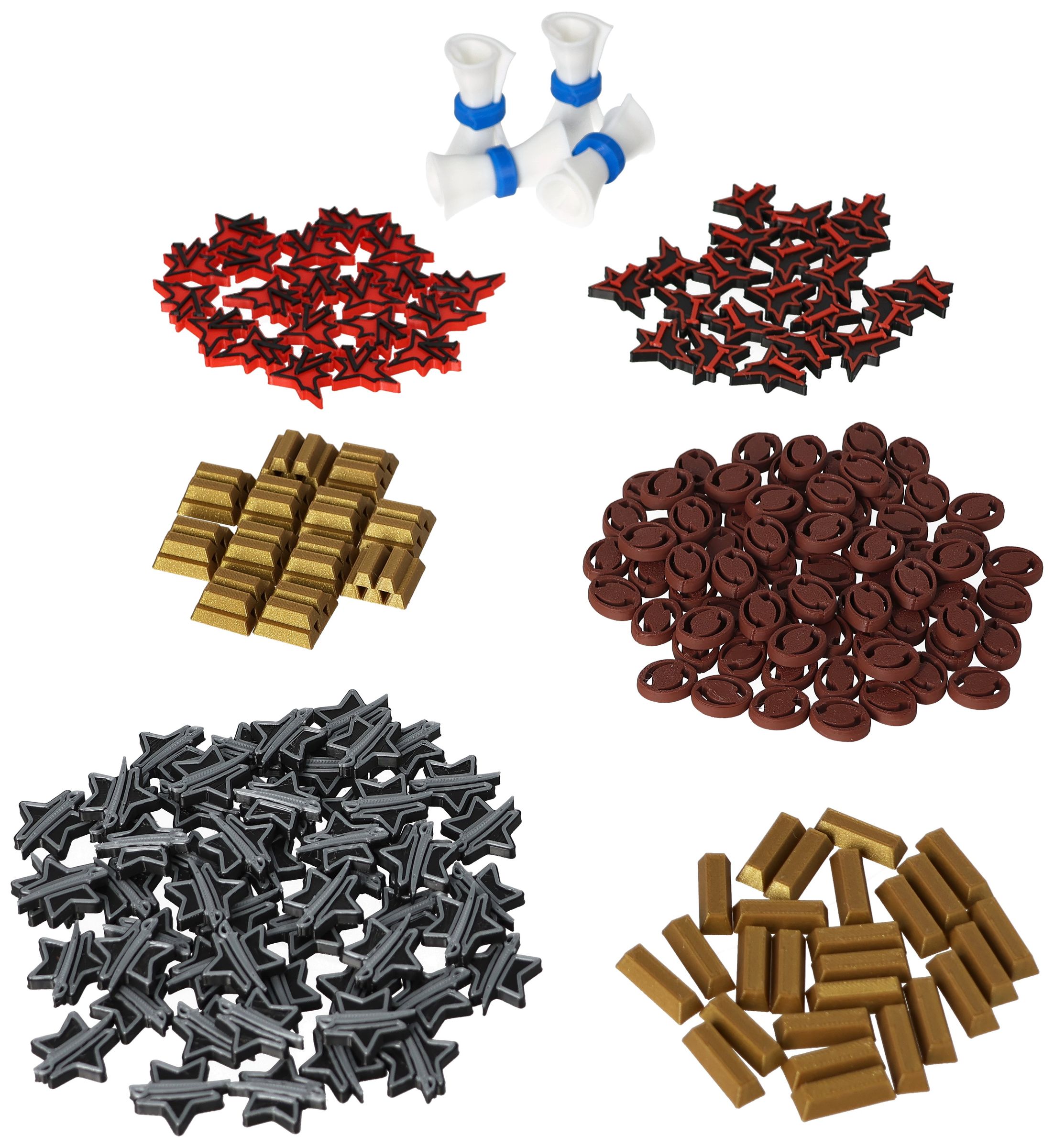 Take Anno 1800 to the next level with this high-quality 3D-printed Feldherr Token Upgrade Set. These tokens replace the cardboard tokens and add a new dimension of depth and realism to the game.