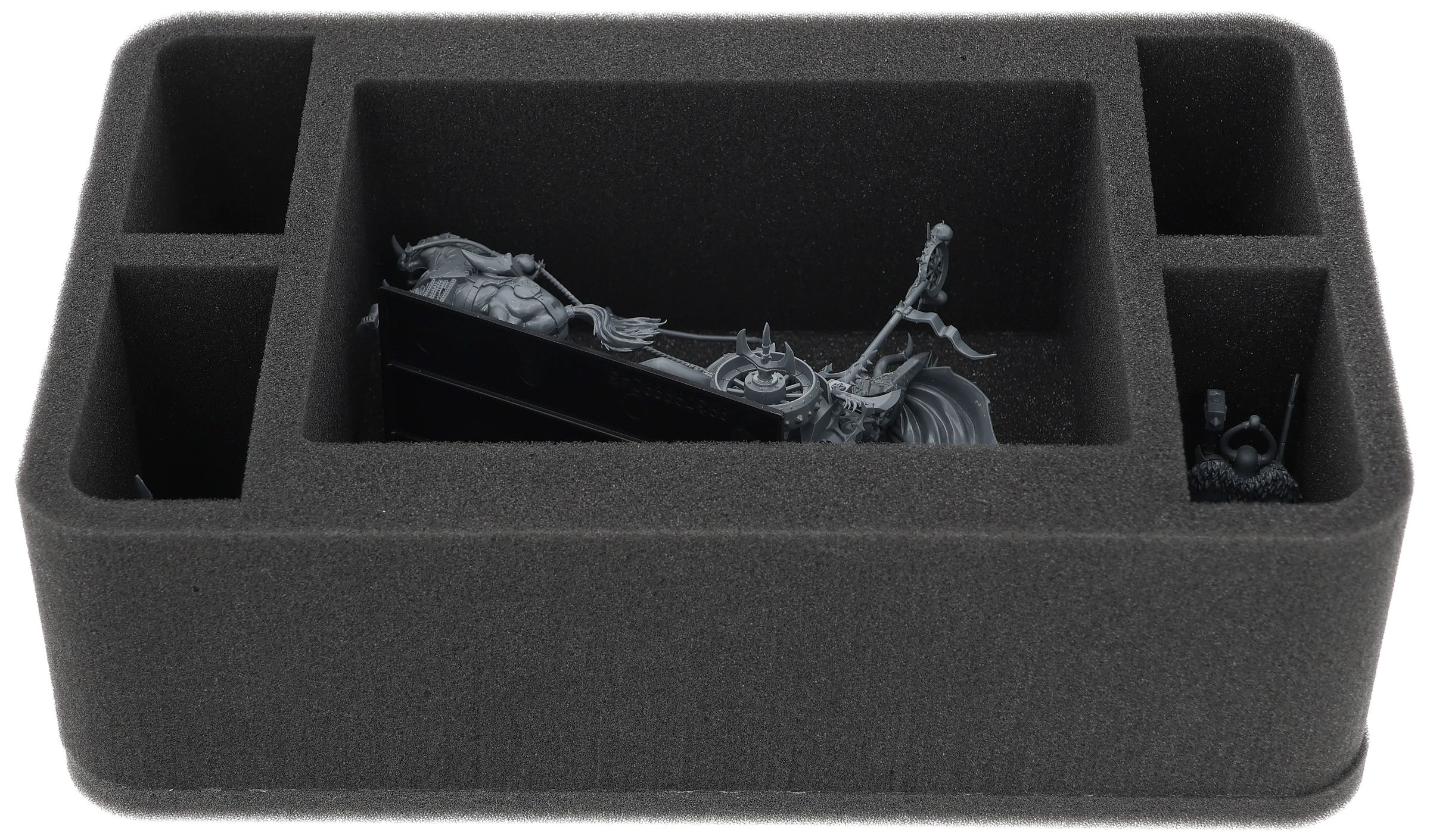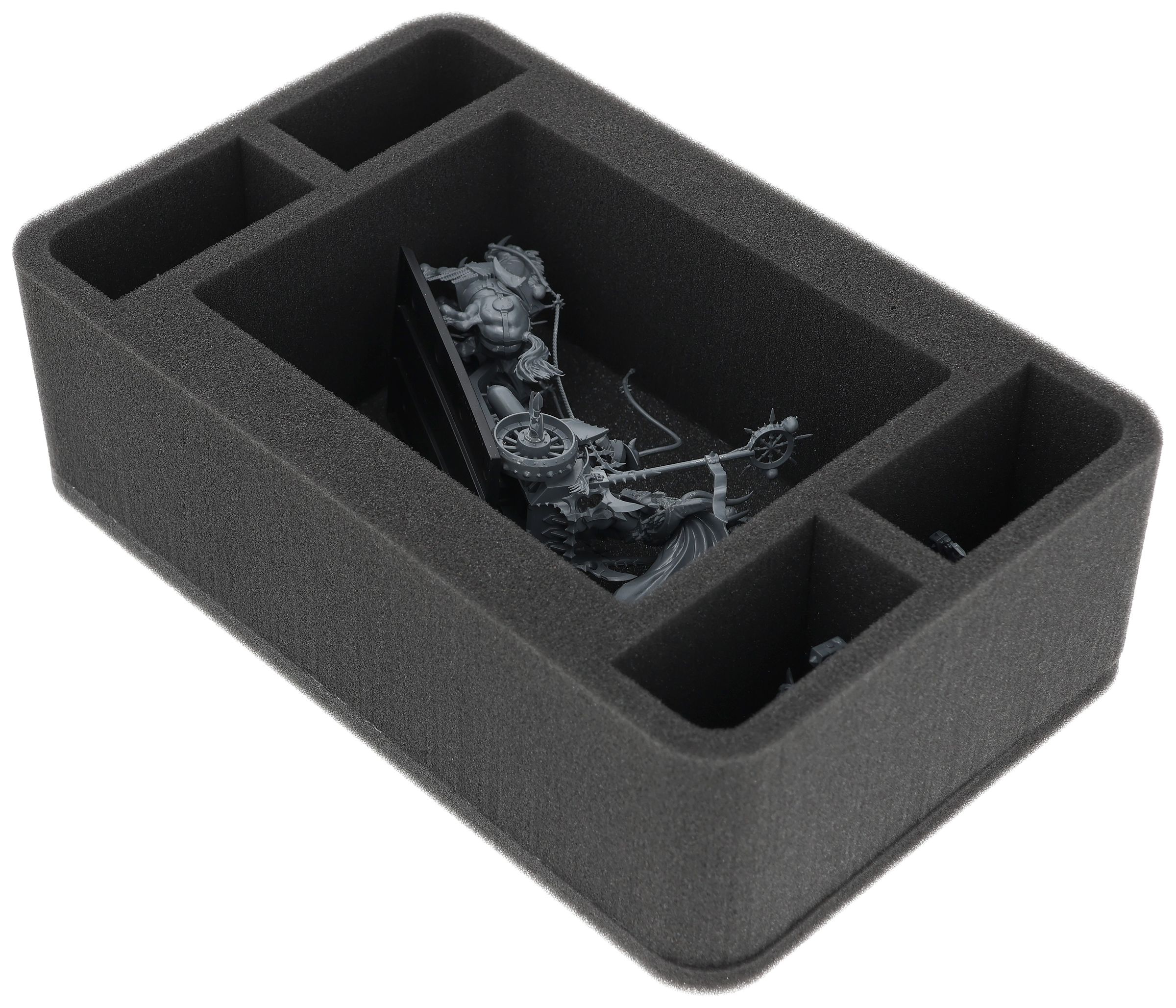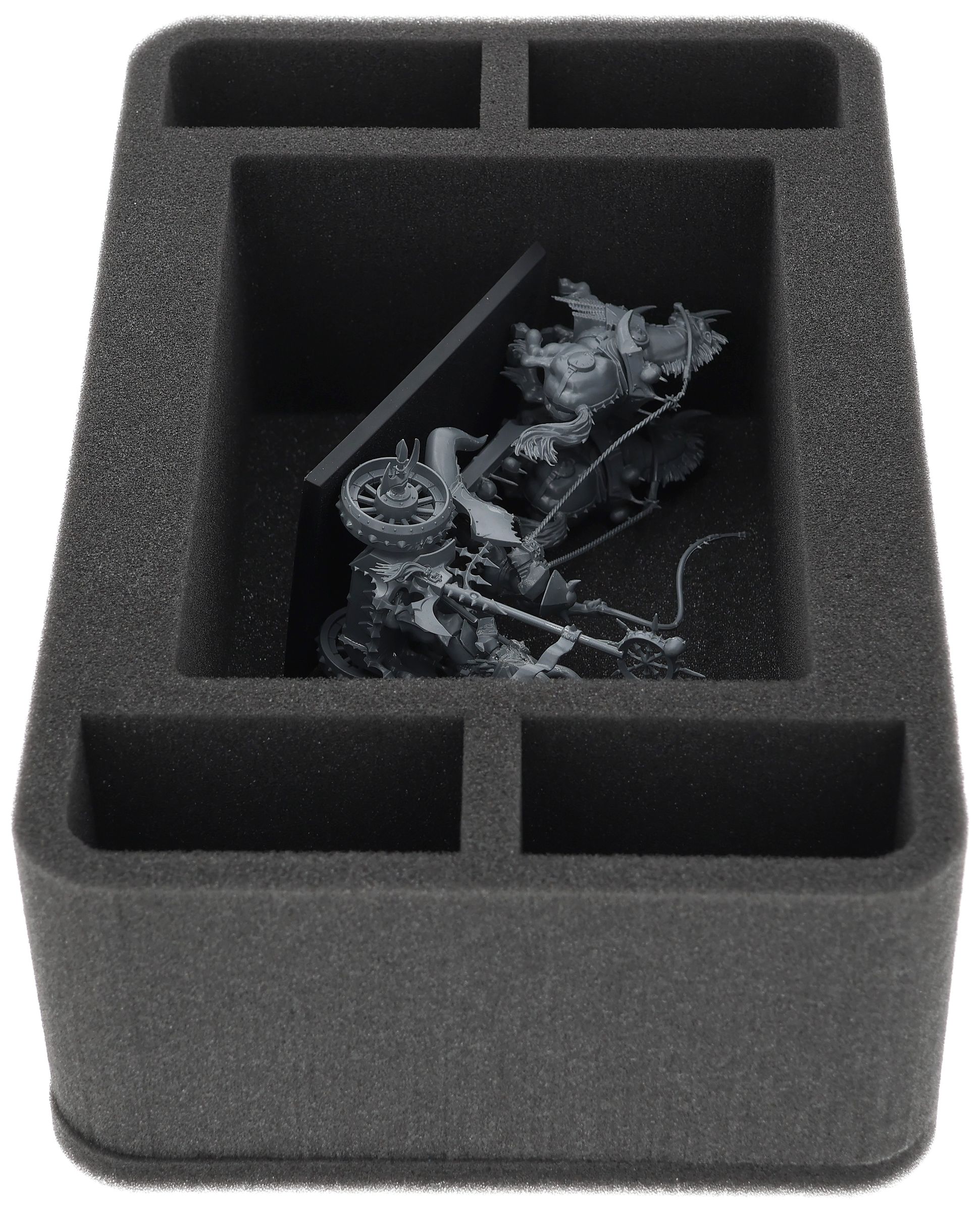 On this Feldherr foam tray you have space for up to 5 miniatures of your army. The insert is especially suitable for storing the Chaos Chariots and similar sized models.