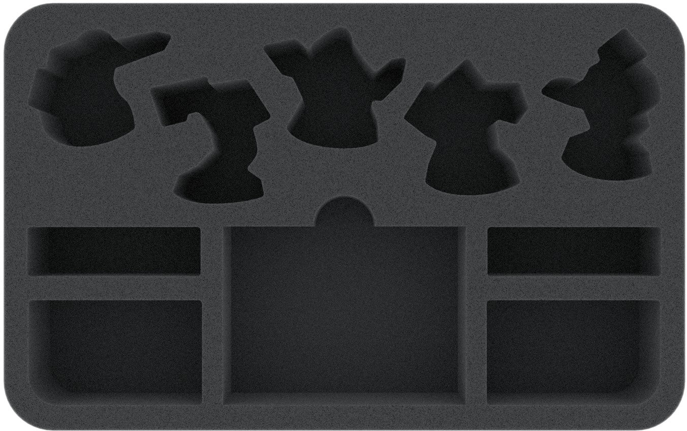 The horde led by chieftain Garrek Bloodbeard may go into battle without armor, but your characters should better be kept well. To store the miniatures and the corresponding game components safely, we have the suitable foam tray for you.