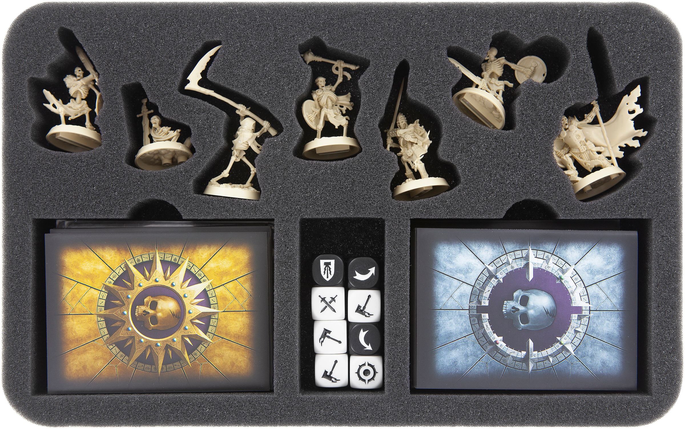 This bony warband for Warhammer Underworlds: Shadespire comes with seven finely crafted miniatures and the corresponding deck of cards. To store the skeletons safely, we offer the suitable foam tray.