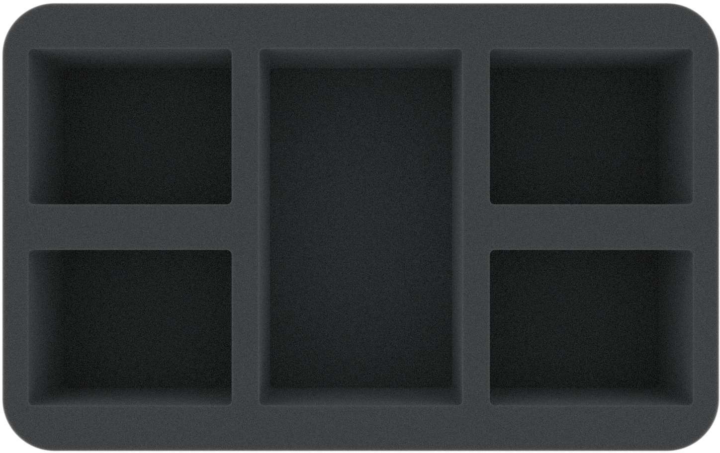 This Half-Size foam tray has 5 compartments of different sizes. It is particularly suitable for the clear storage of game material such as cards, tiles or tokens.