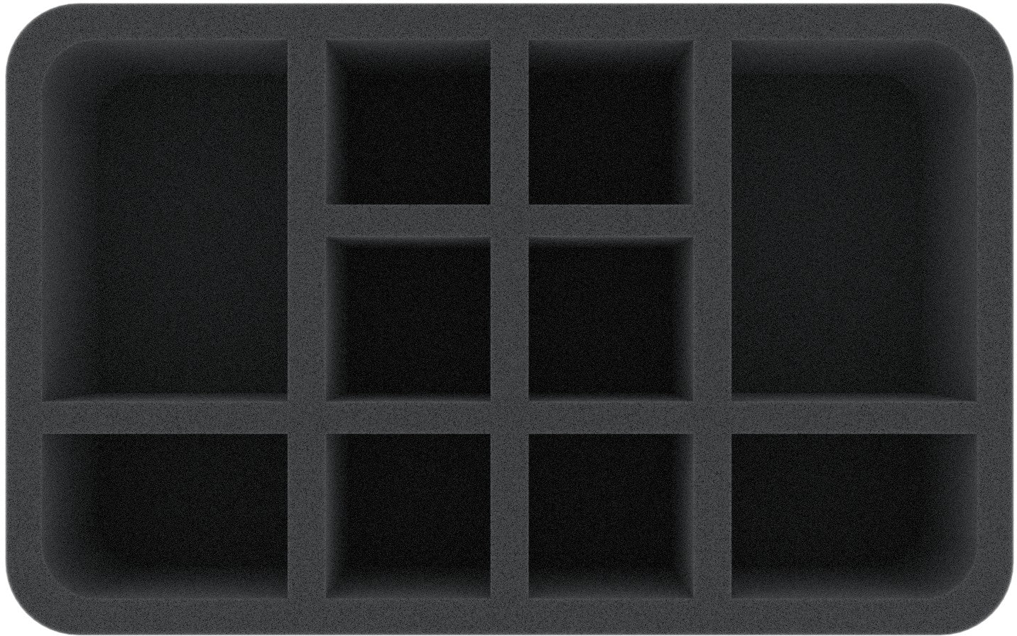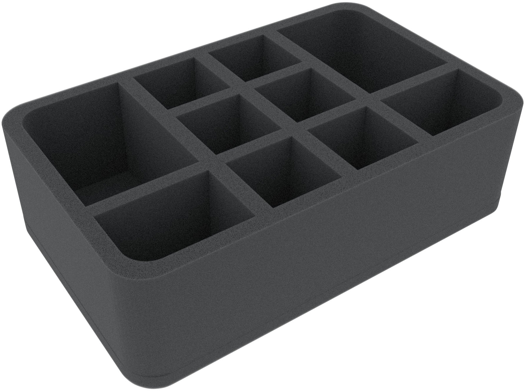 This 80 mm high foam tray is divided into 10 compartments. It is particularly suitable for the safe storage of tabletop and board game miniatures, as well as other fragile models and small parts.