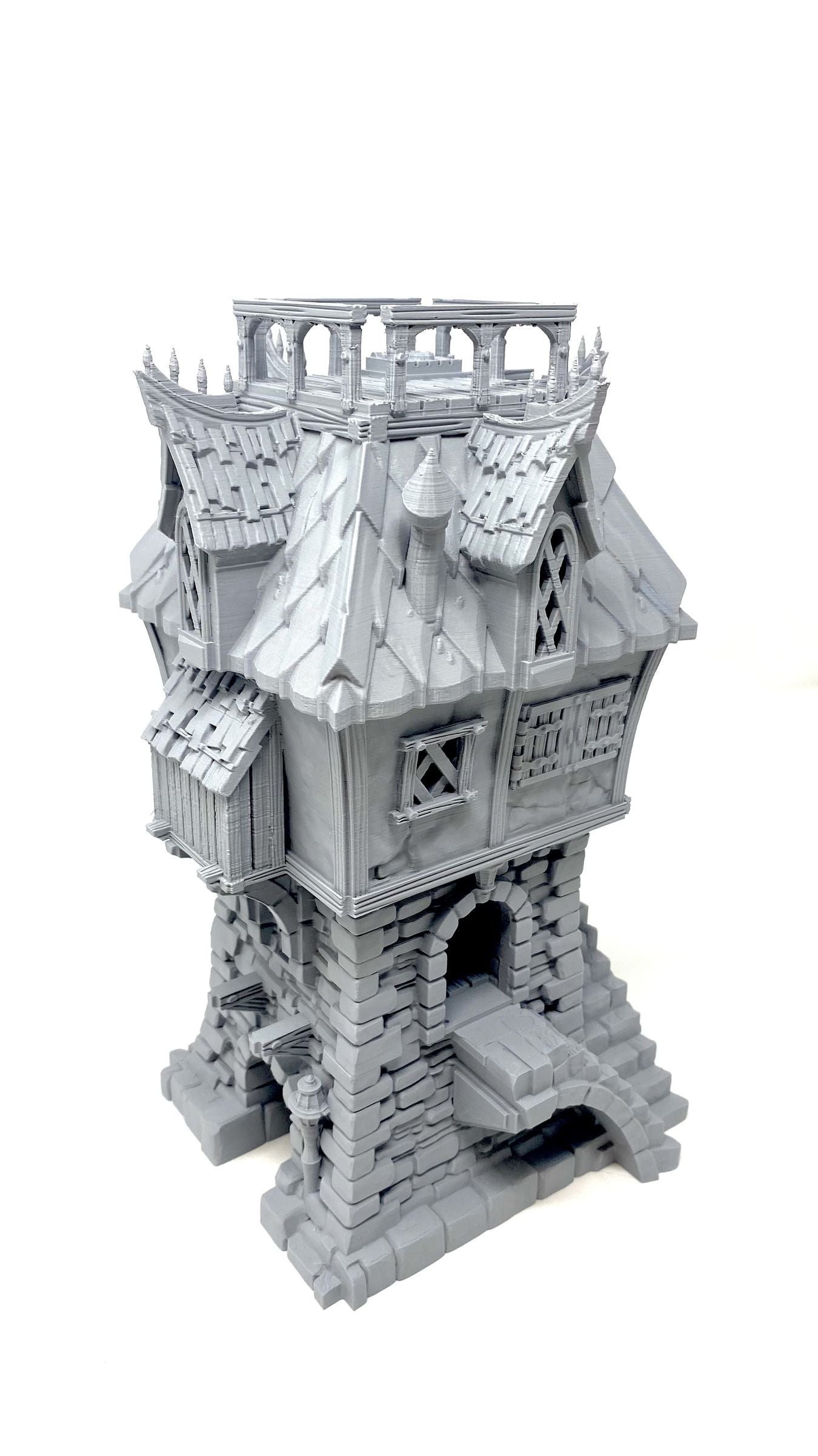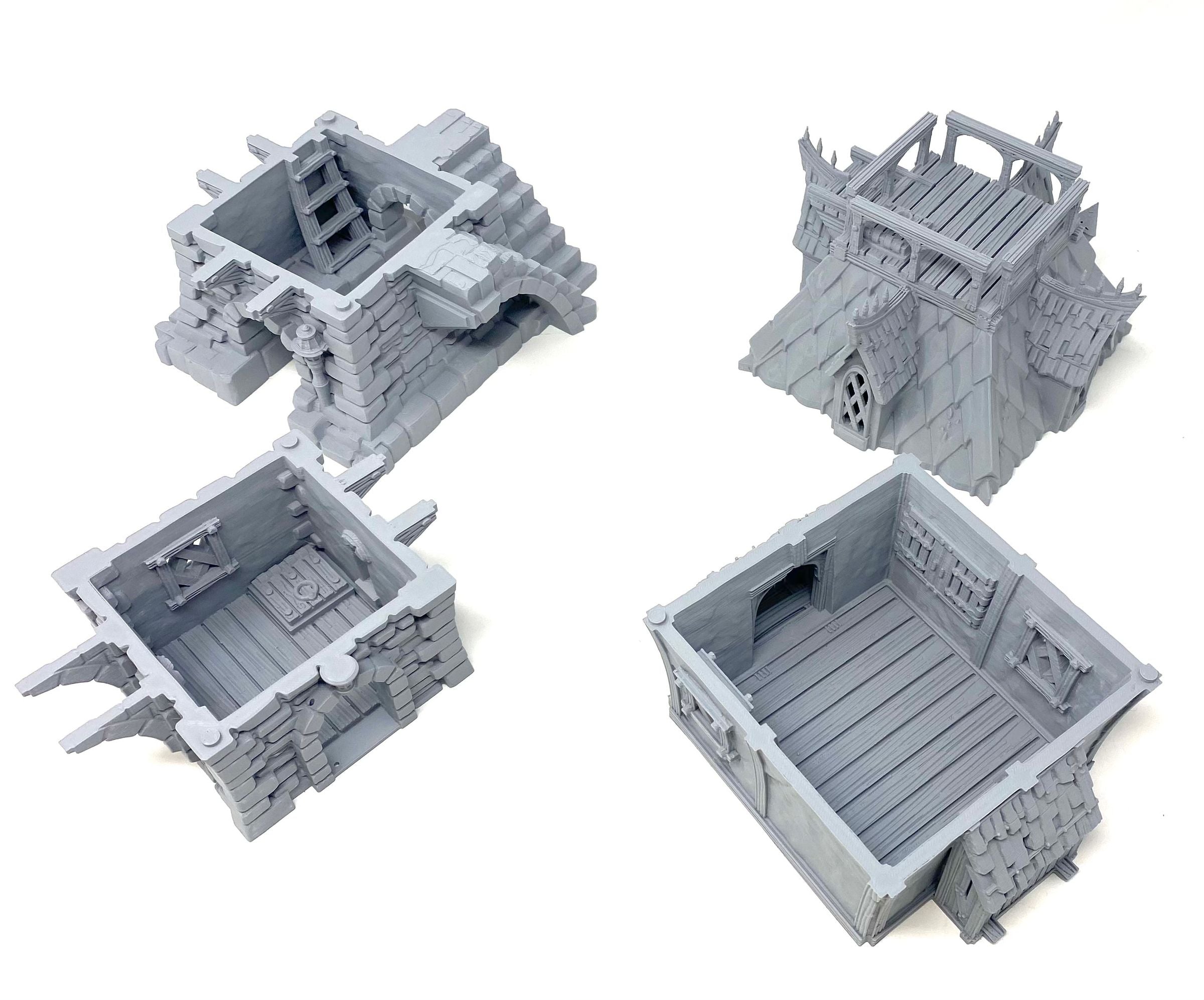 3D printed townhouse, with removable roof and levels and detailed interior. The intricately designed townhouse can be used as a terrain piece for your tabletop game or part of your medieval model village. In any case, it is an absolute eyecatcher!