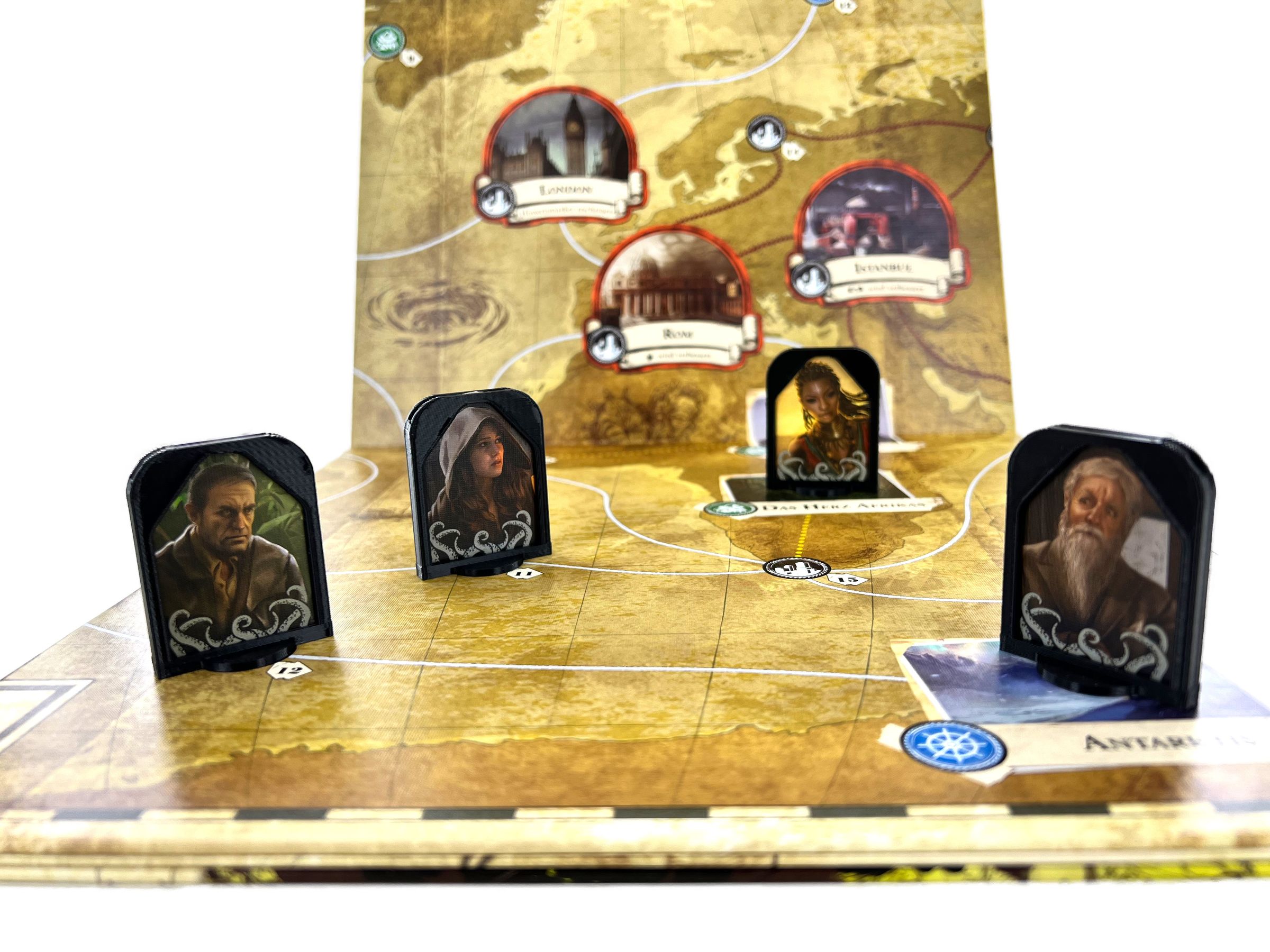 - The Character Standee is compatible with the Investigator tokens from Arkham Horror 3rd Edition and Eldritch Horror and replaces the original bases.