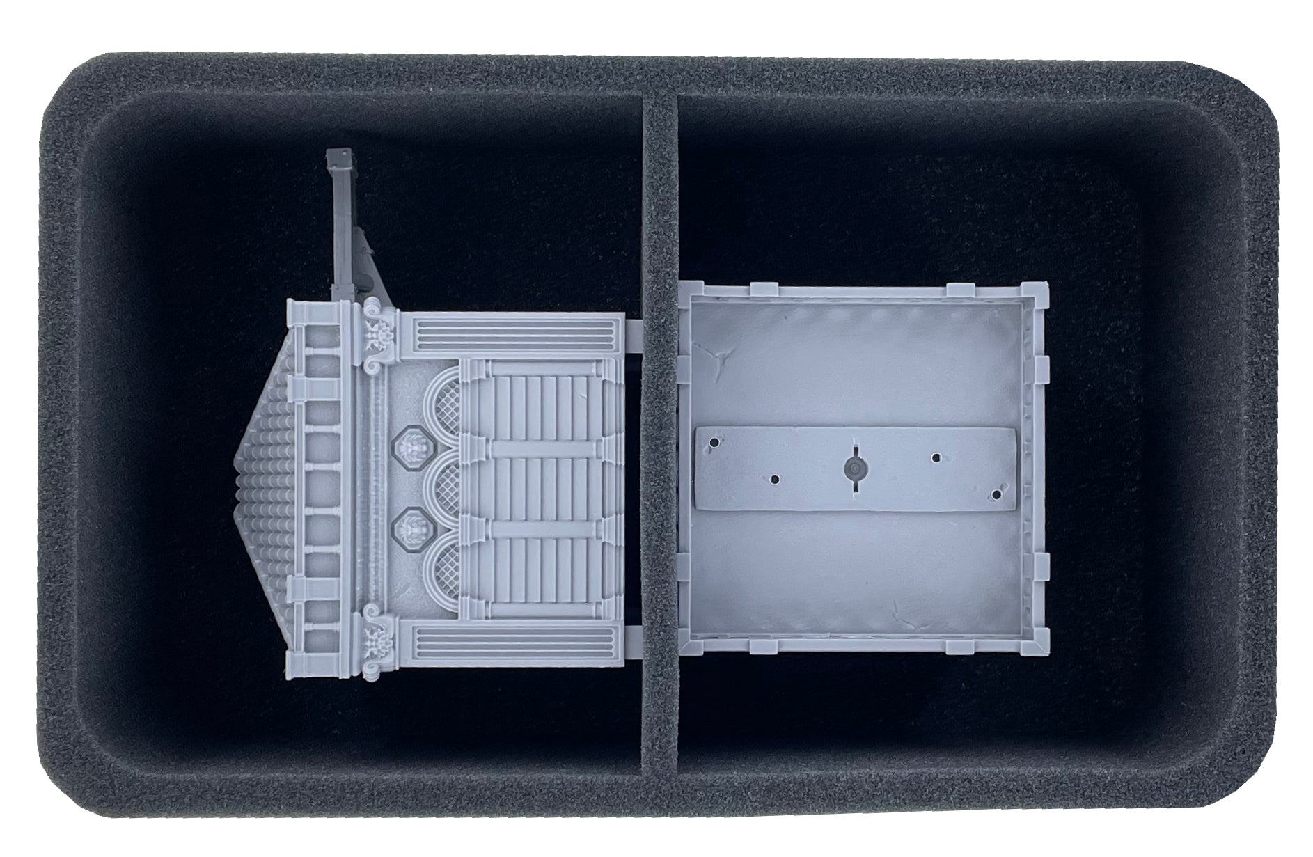 • 1 Full-Size foam tray with six compartments for very large terrain like the Crows Nest Tower Basement, The Tower Basement + medium-sized terrain like the Crows Nest Spire, The Tower Bell, Haycarts (FSBN110BO)