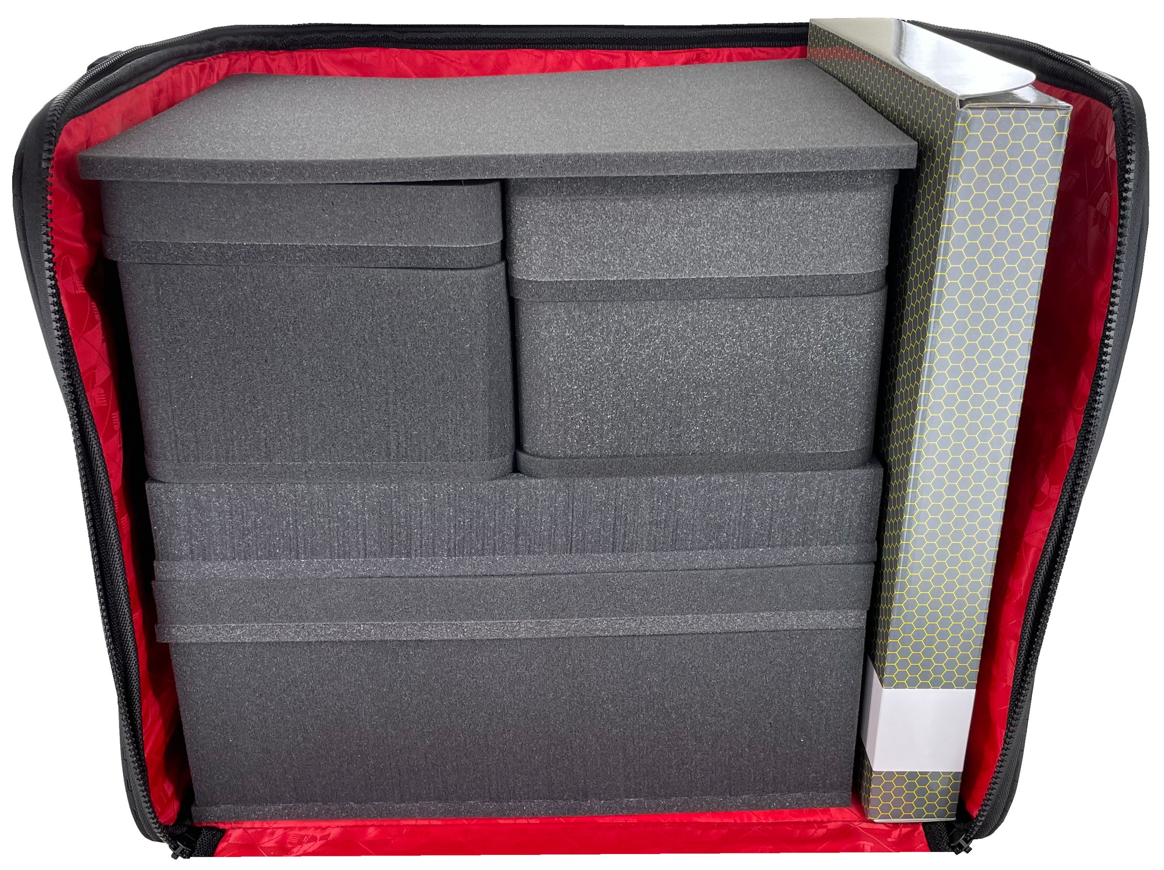 Completing the set are the matching foam toppers and a convoluted foam topper. The Half-Size foam toppers compensate height differences while the Full-Size topper protect the topmost trays. Place the convoluted foam topper as an extra cover on the inserts to have additional protection from above.