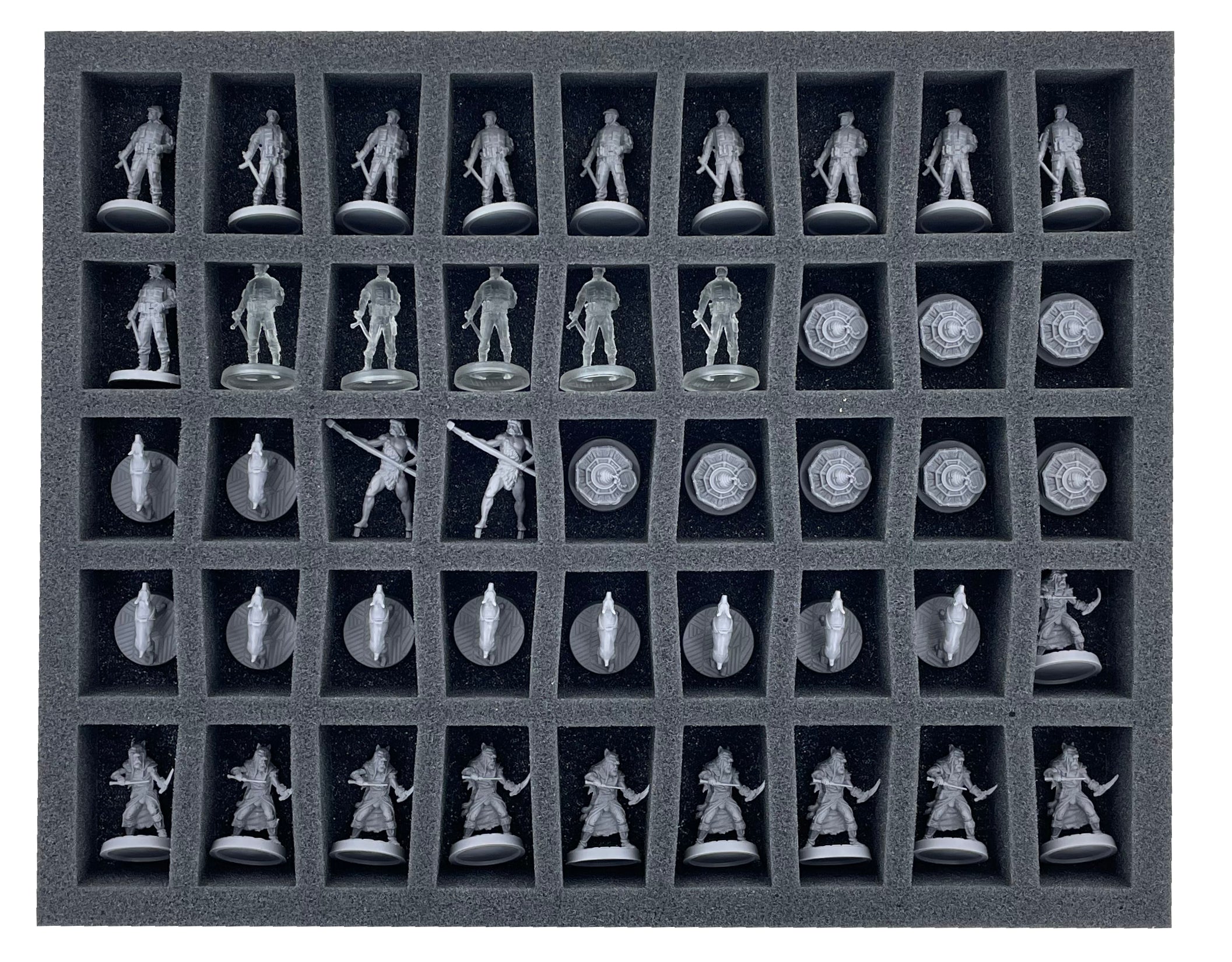 • 1 Full-Size foam tray with 45 compartments for small miniatures like Abstergo Guards, Abstergo Guards (Optical Camo), Abstergo Guard Dogs, Leonardo's War Automata, Followers of Romulus, Statues (FS035C5BO)