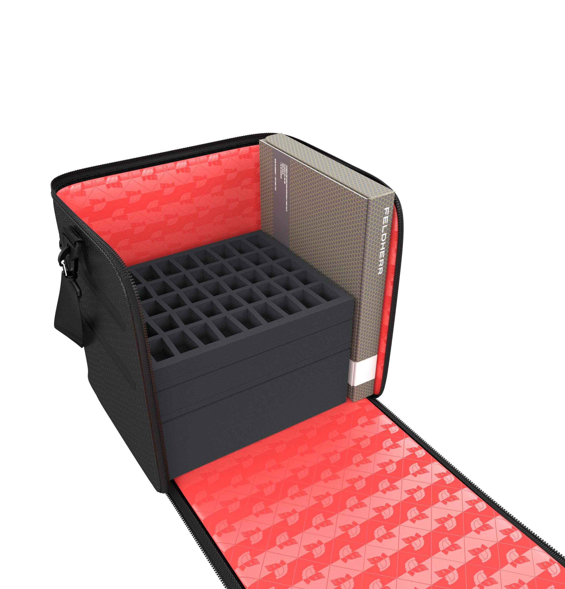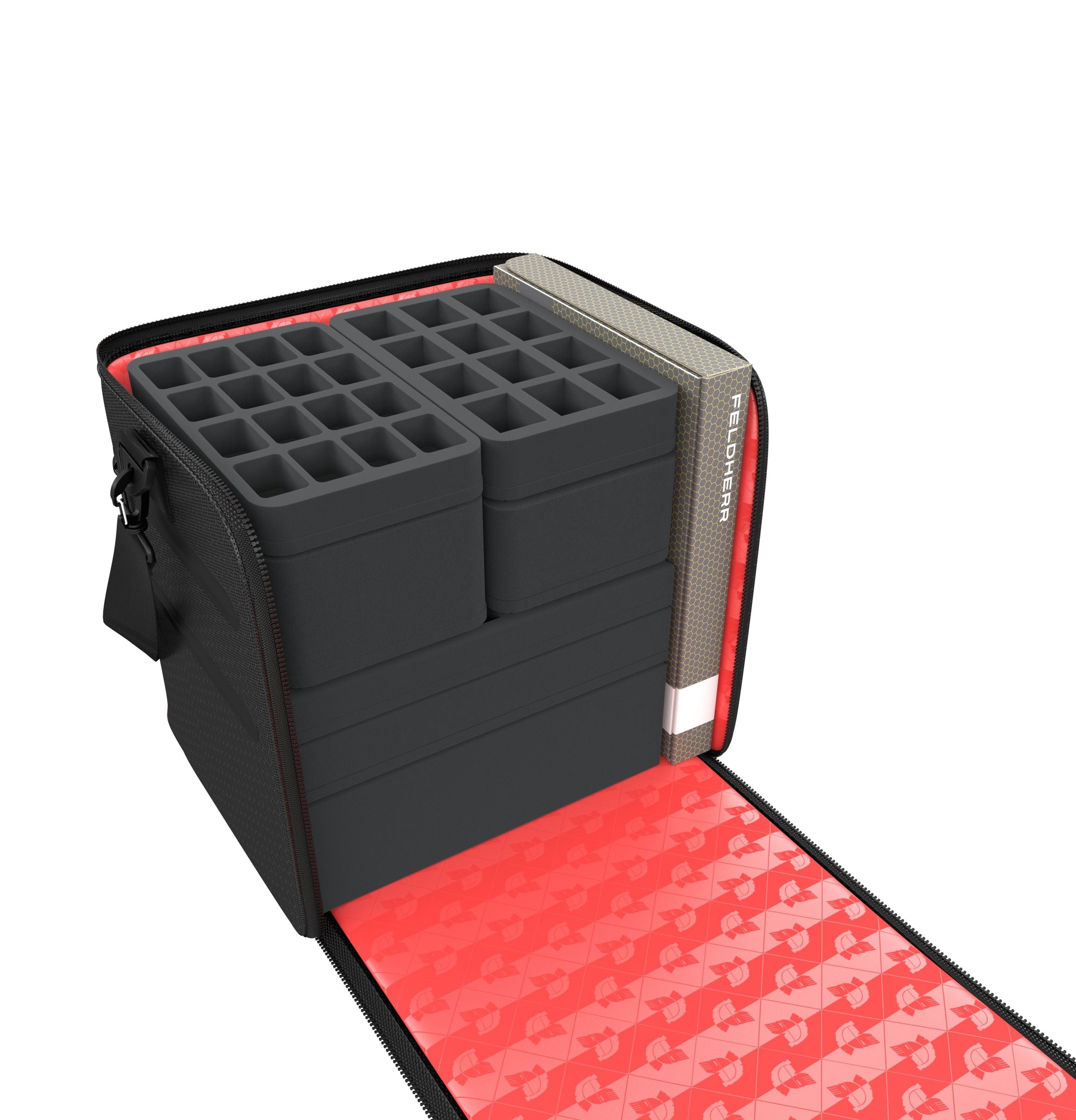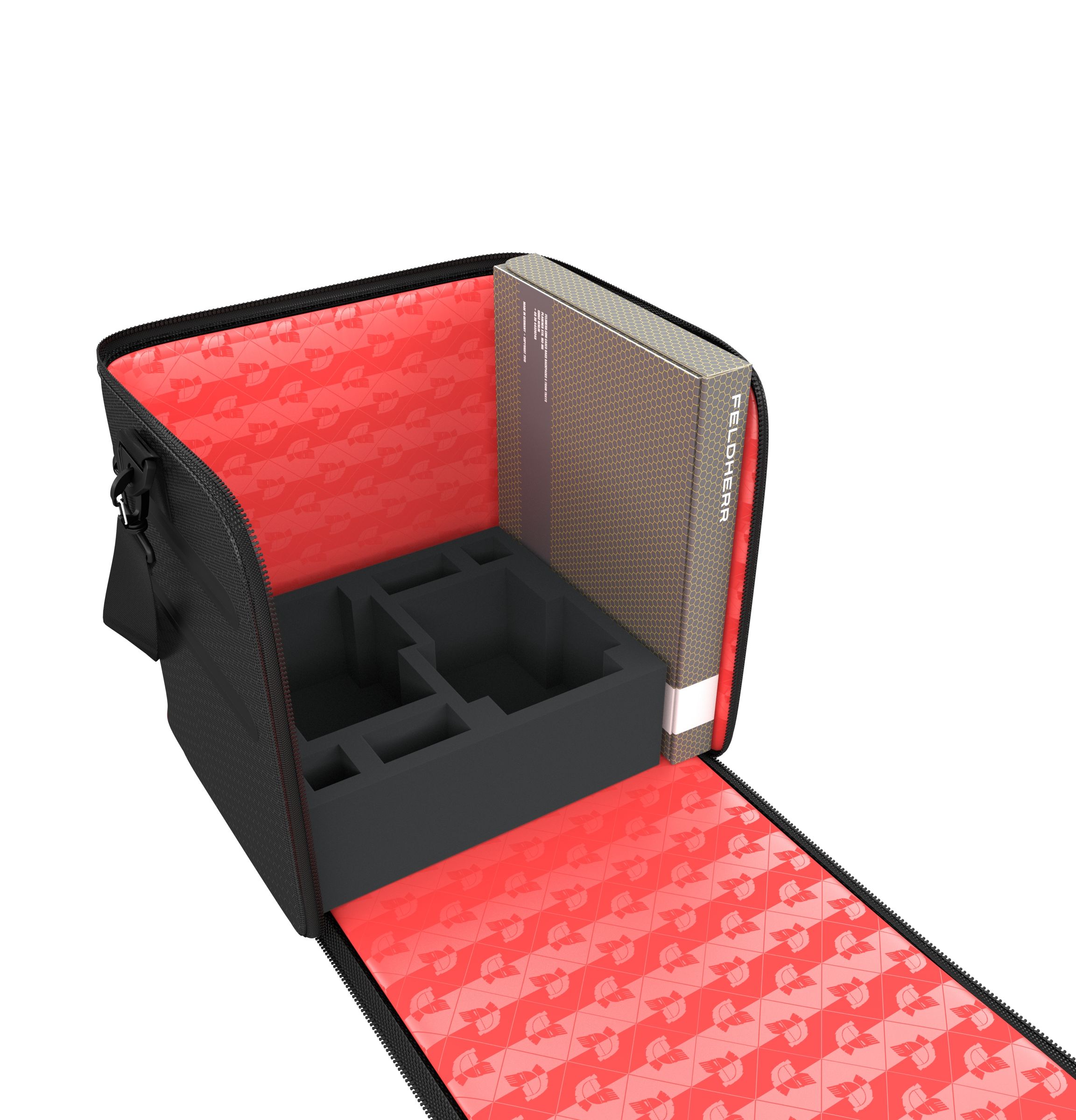 We help you stow away the extra content and prevent the ravages of time from wearing away at your miniatures and game materials. For this case, we assembled a package more than worthy of a Master Assassin. You can store all miniatures, envelopes, and the entire game materials from the pledge compactly and safely in the Feldherr-General 370 bag incl. Storage box FSLB040 and custom foam. You can even store the towers in this set. This way, you can transport everything comfortably to the next game night.