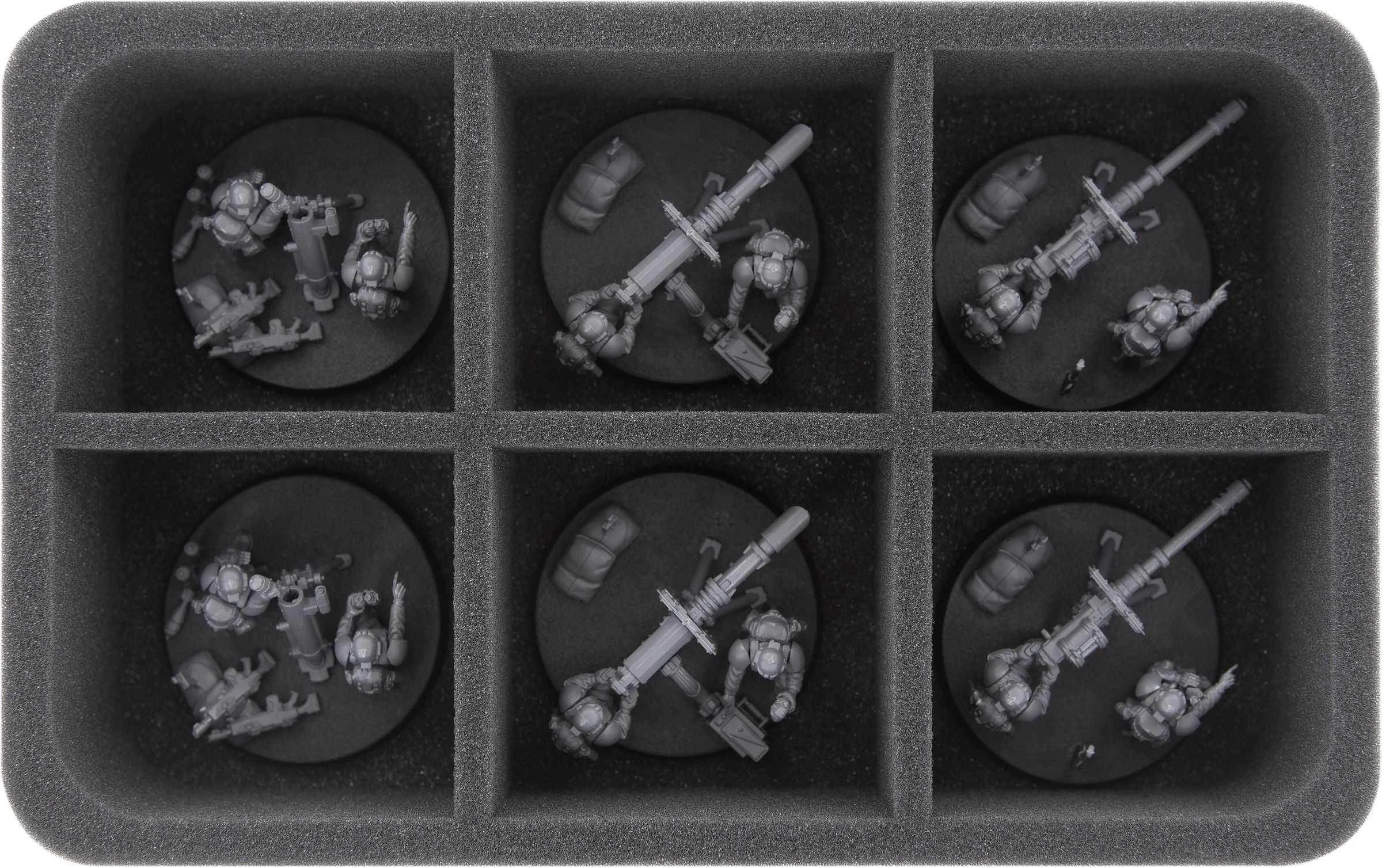 - 1 Half-Size foam tray with 6 compartments for Heavy Weapons Teams and models with similar dimensions (HS060A006)