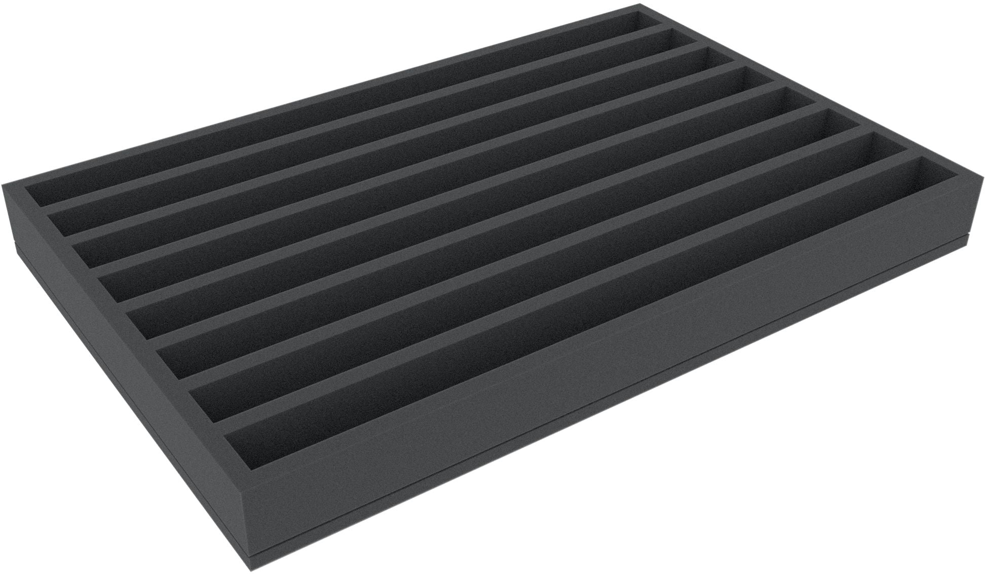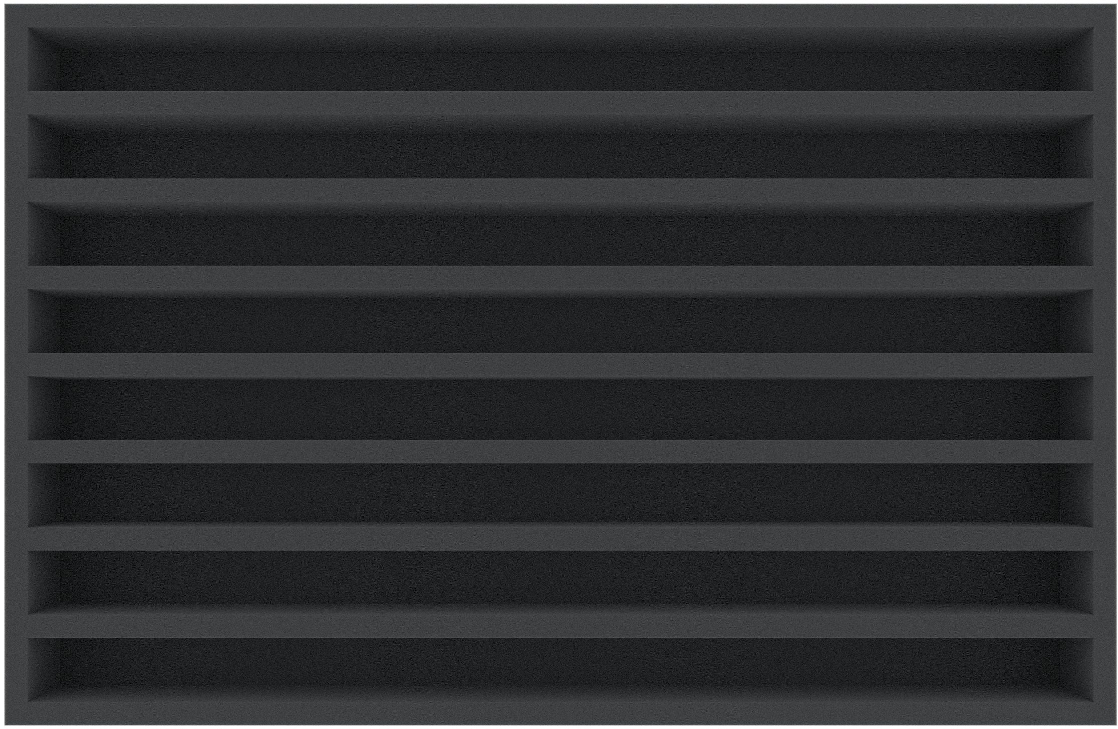 This 55 mm high foam tray is divided into 8 compartments. It is particularly suitable for the safe storage of tabletop and board game miniatures, model trains, as well as other fragile models and small parts.