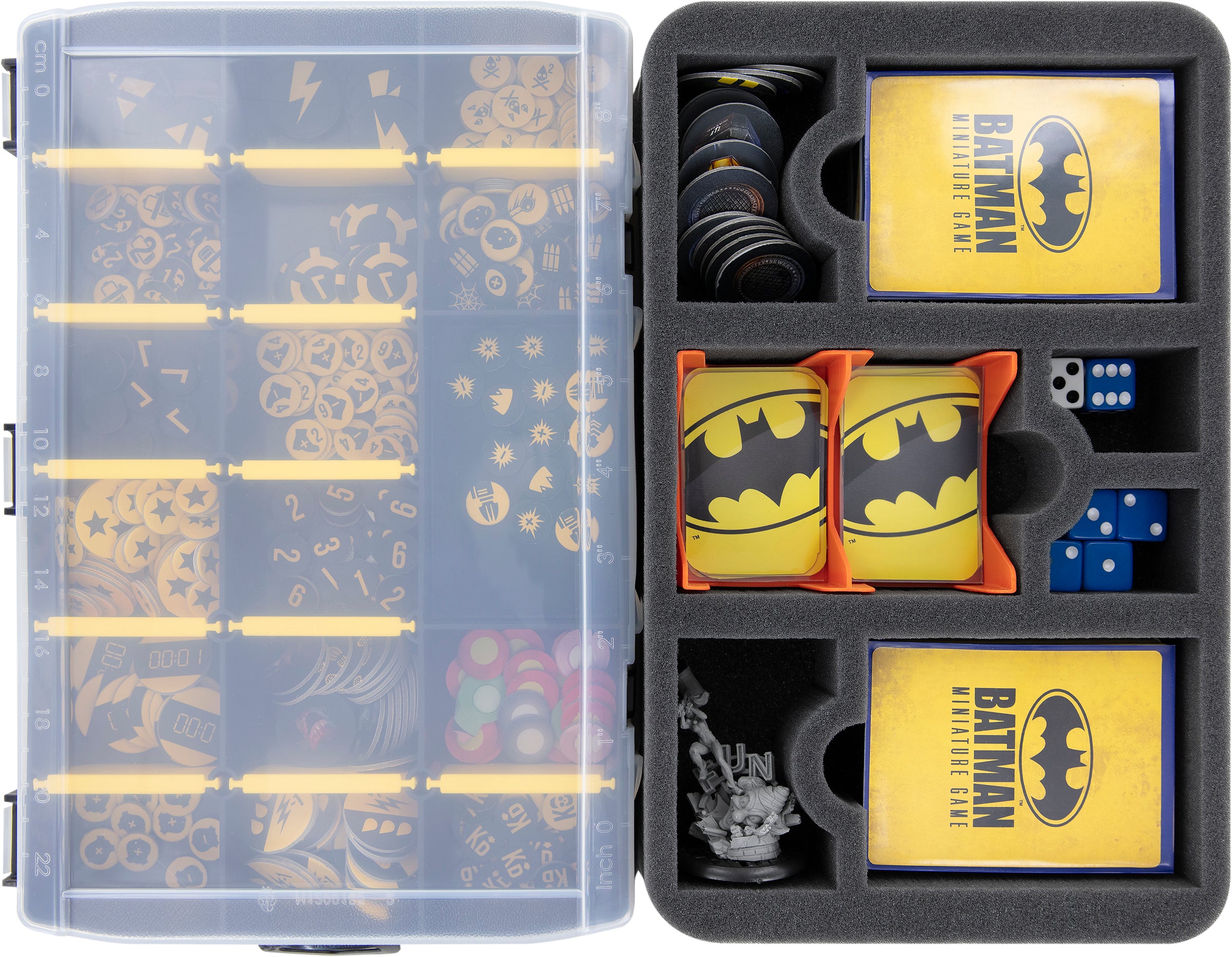 Finally, a foam topper ensures that your figures are safely packed and protected for transport to the game table. Place the Rule book on the topper.