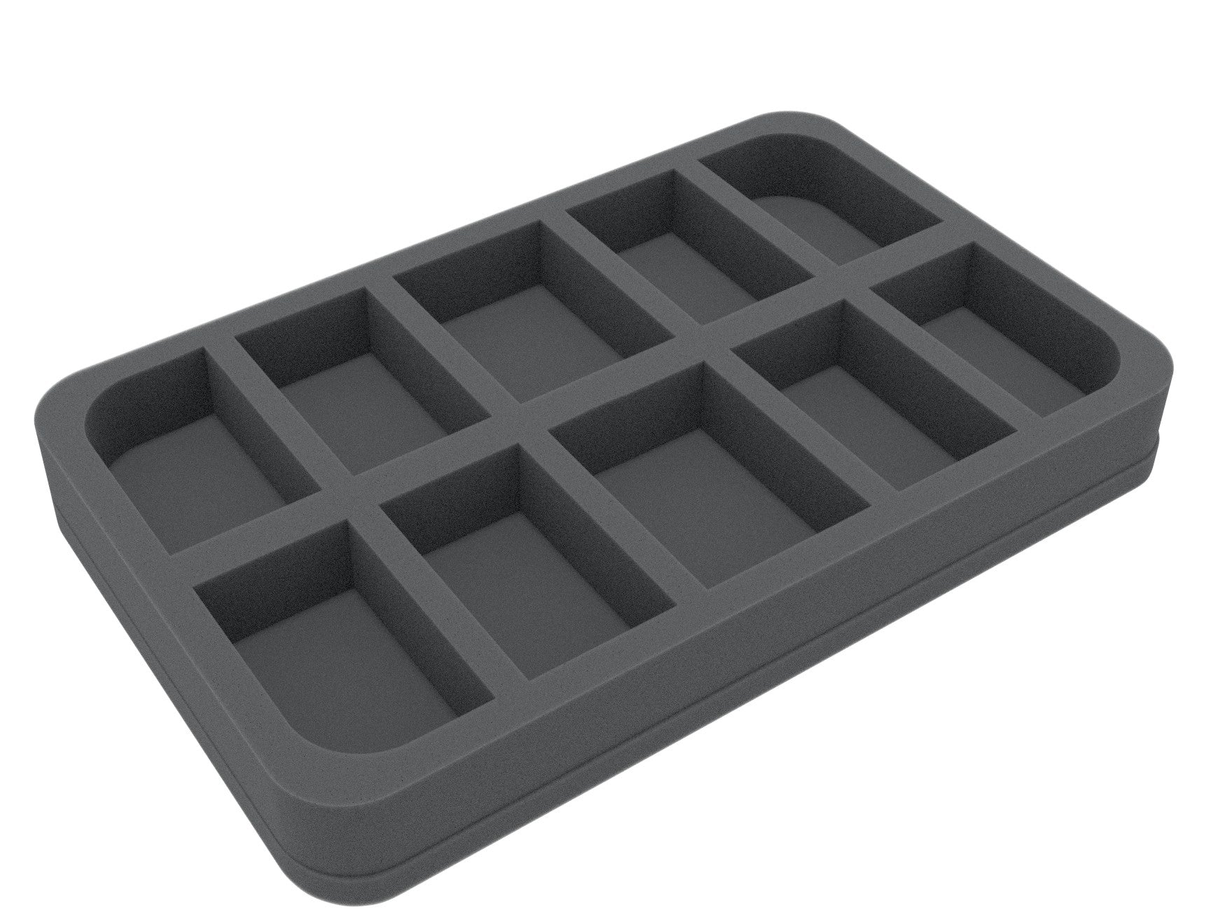 - 1 Half-Size foam tray with 10 compartments for middle-sized und large Mechs like Atlas, Piranha und miniatures of similar size (HS035BT03)