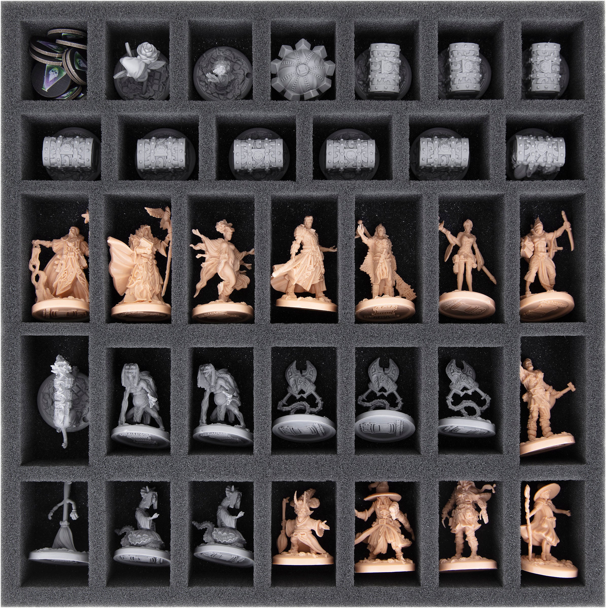 - 1 foam tray with 34 compartments for miniatures and tokens (AFMEDY040BO)