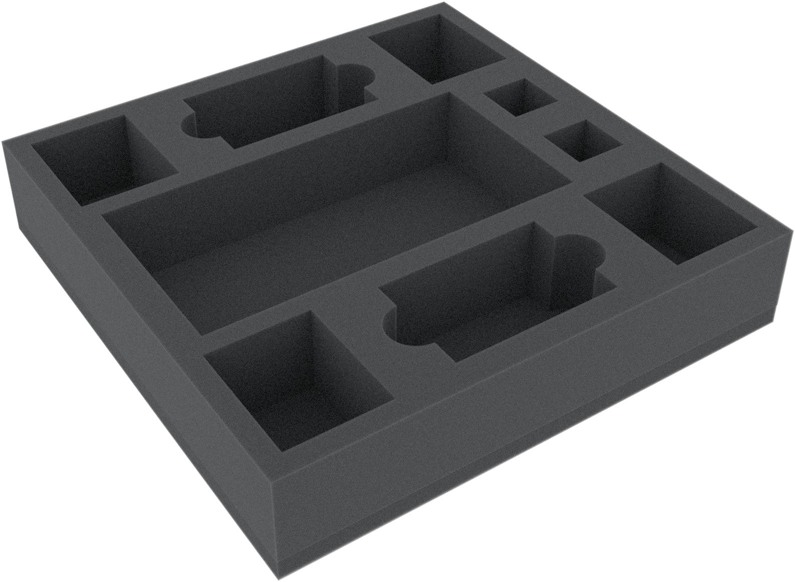 Foam tray with 9 slots for many original board game boxes. The 9 different slot own yourself for everything imaginable game material.