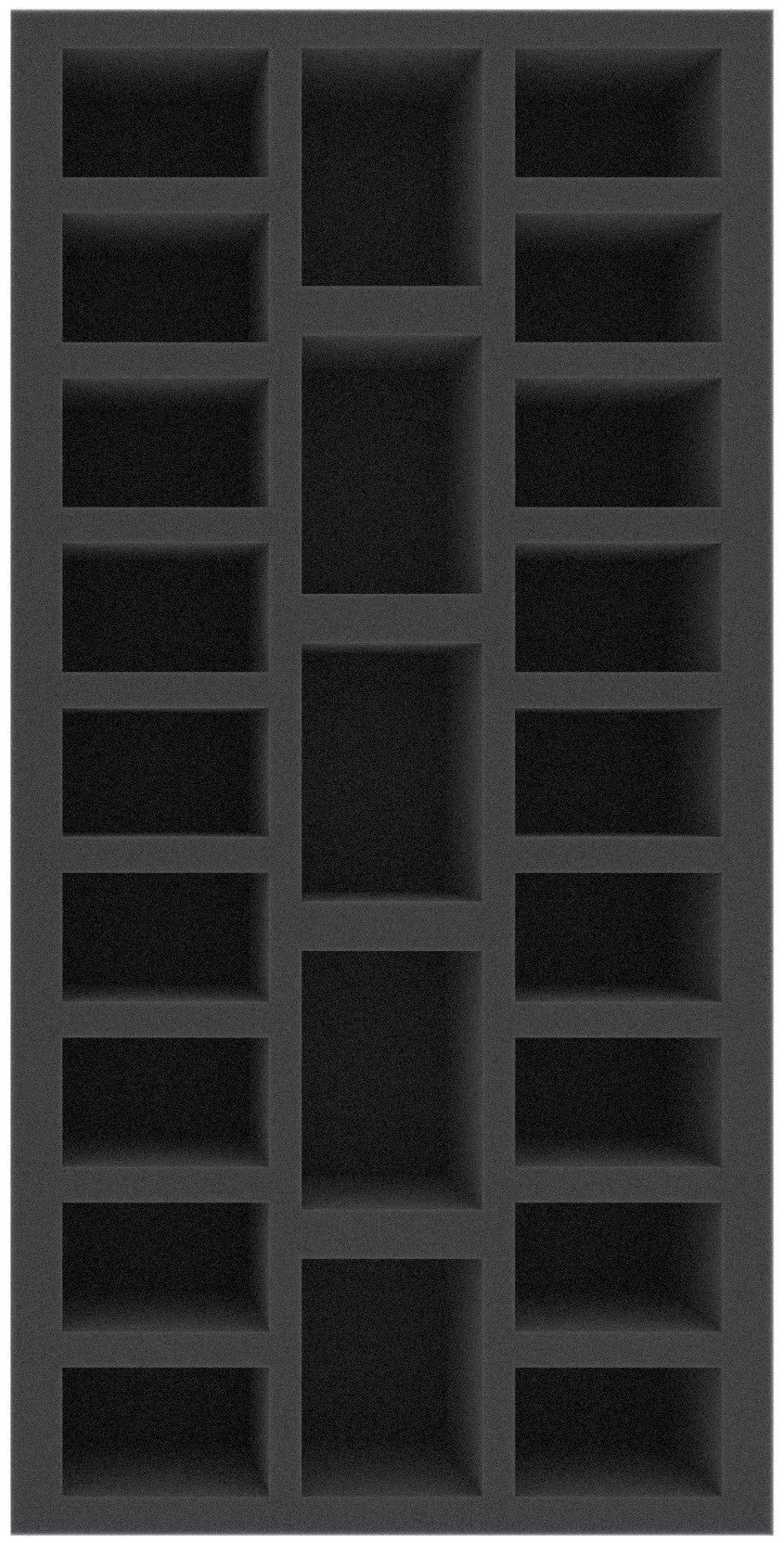 This foam tray suitable for retrofitting in many original board games boxes. The 23 different sized compartments are suitable for all conceivable game material. So miniatures, markers and dice can be kept in well.