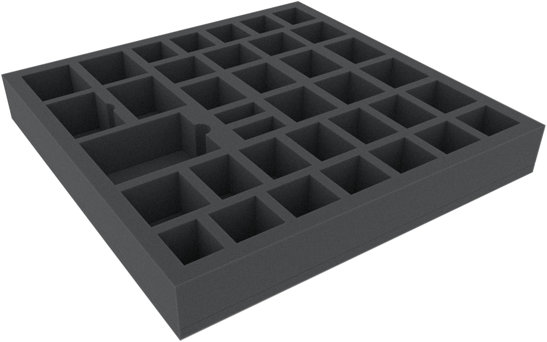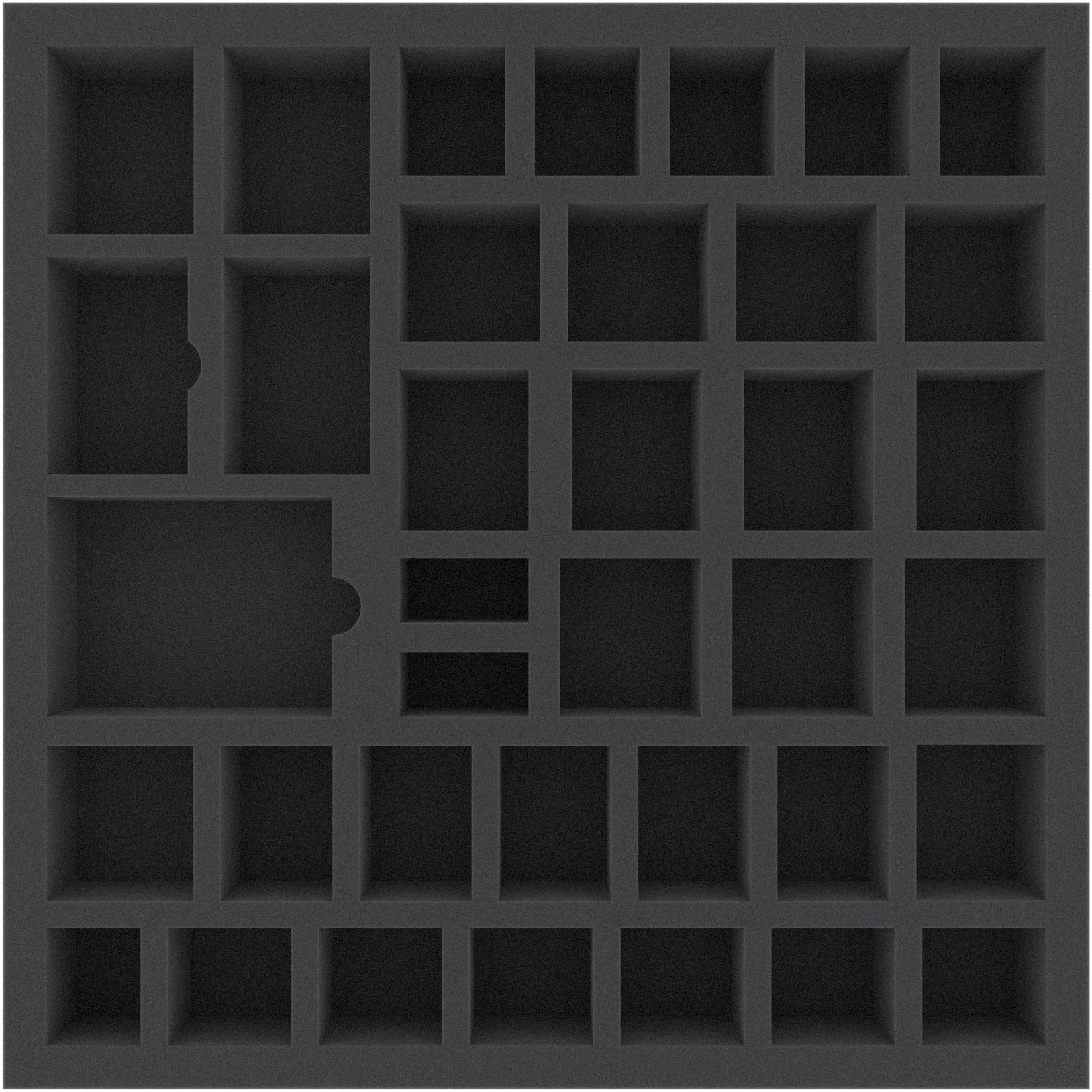 This foam tray has 37 compartments for the safe and orderly storage of miniatures, cards, dice and tokens.
