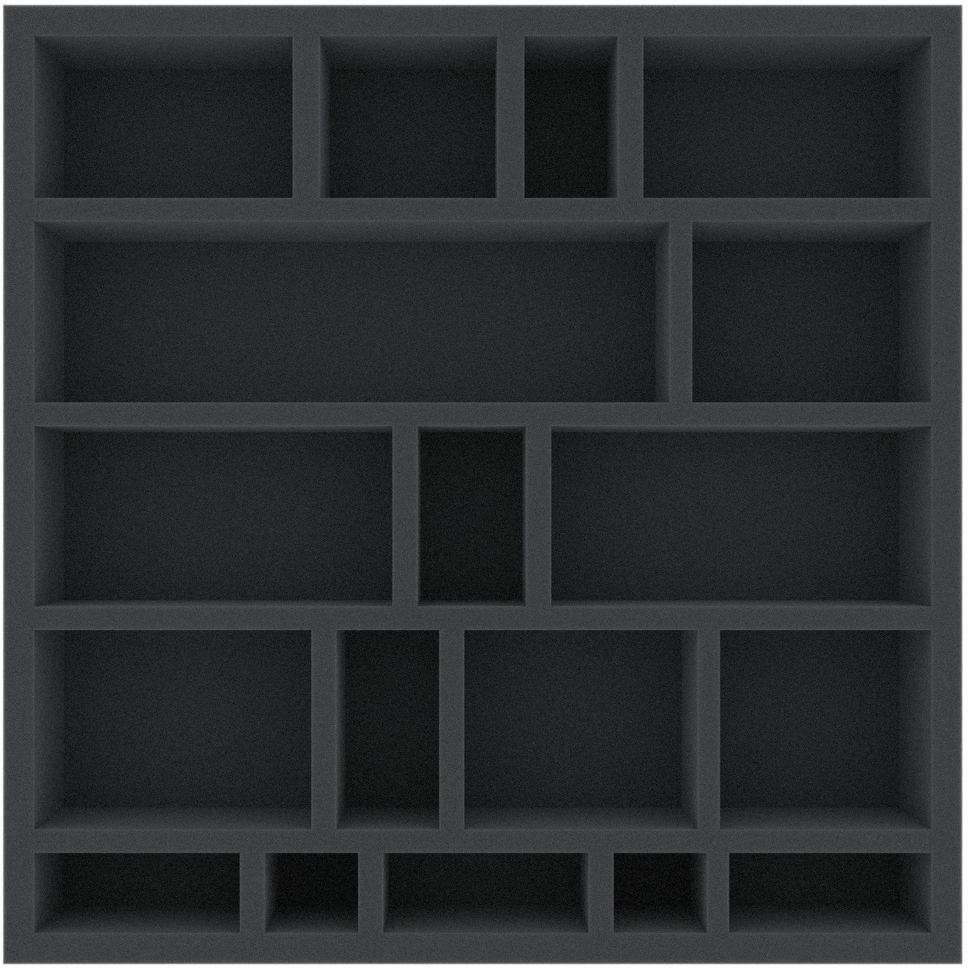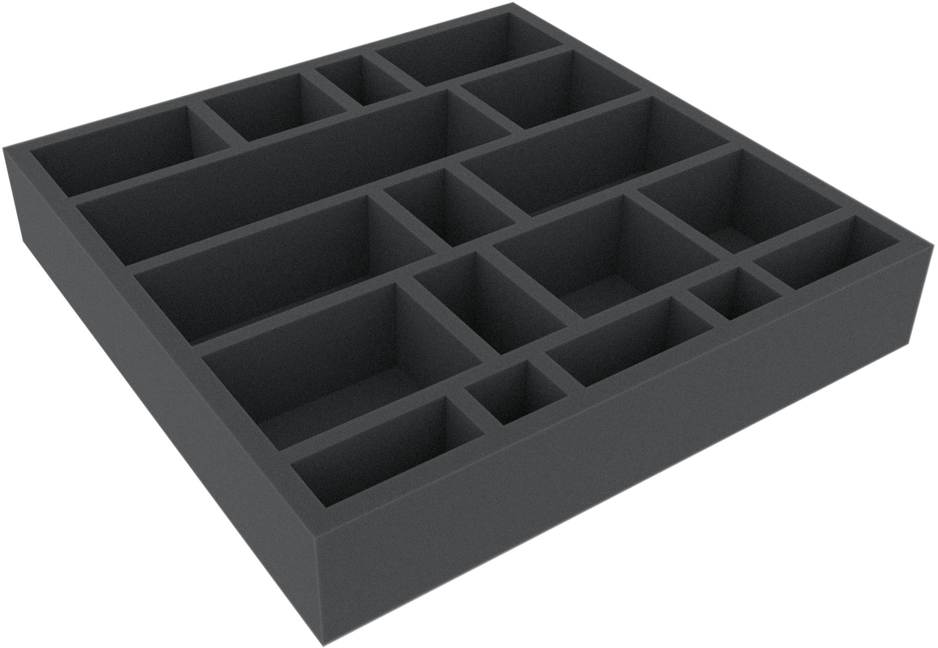 The foam insert has the following dimensions: 308 mm x 308 mm x 55 mm total height (45 mm usable height + 10 mm foam floor)