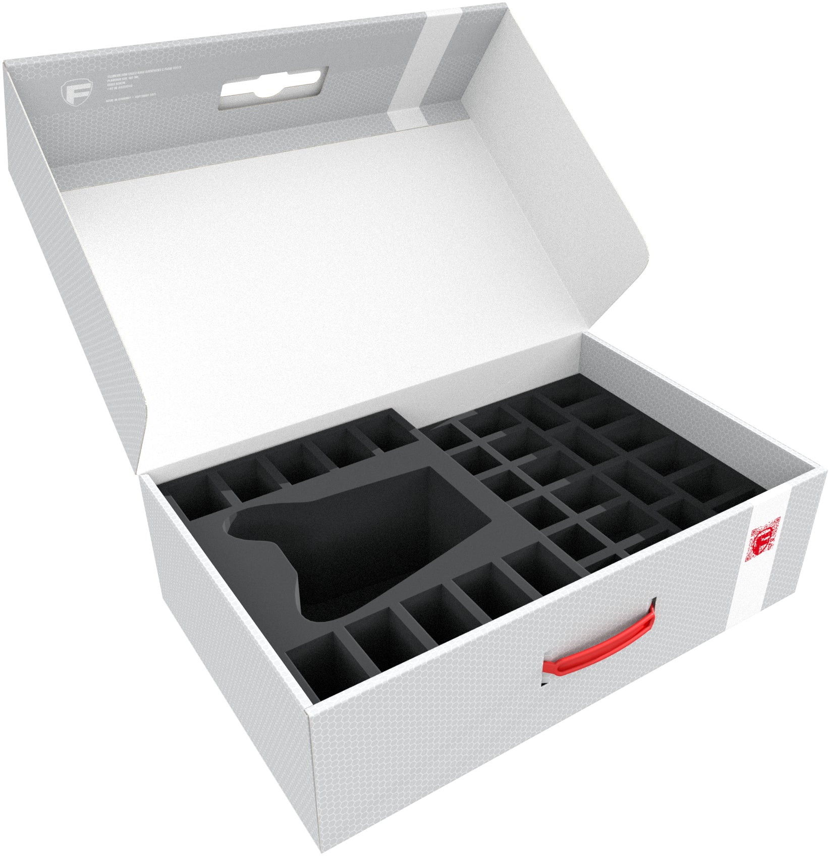In this sturdy Storage Box DSLB150 your miniatures are optimally protected. In the custom Feldherr foam trays you can safely transport up to 49 warrior models to the next battle.
