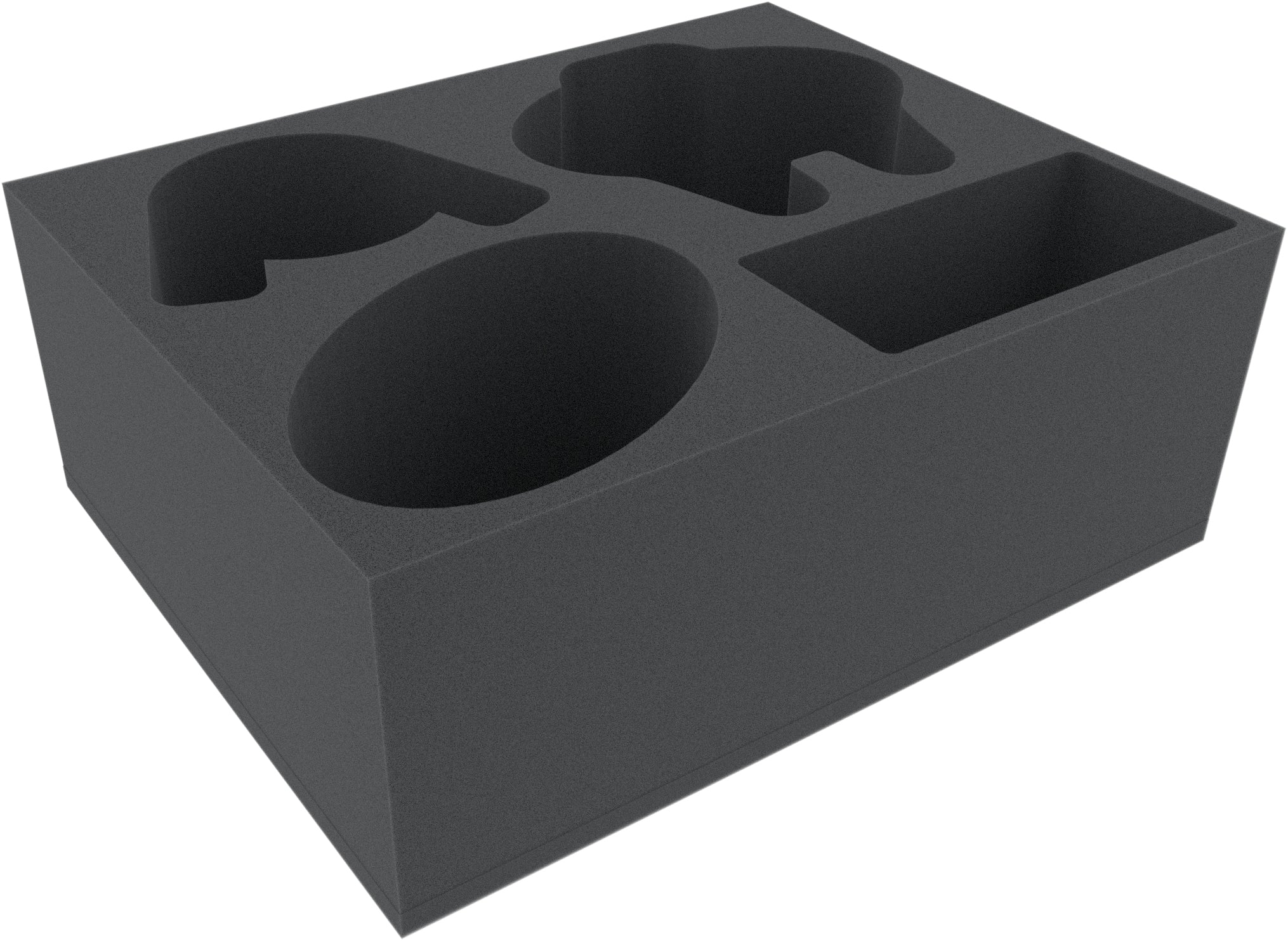 The tray is divided into 4 individually tailored compartments. One large model (e.g. Knight Tyrant, Knight Rampager, Knight Despoiler, Knight Desecrator) can be safely stowed here in two parts - upper part and lower part with legs. Surrounded by foam, the sensitive parts of the miniature are well protected, even during transport.