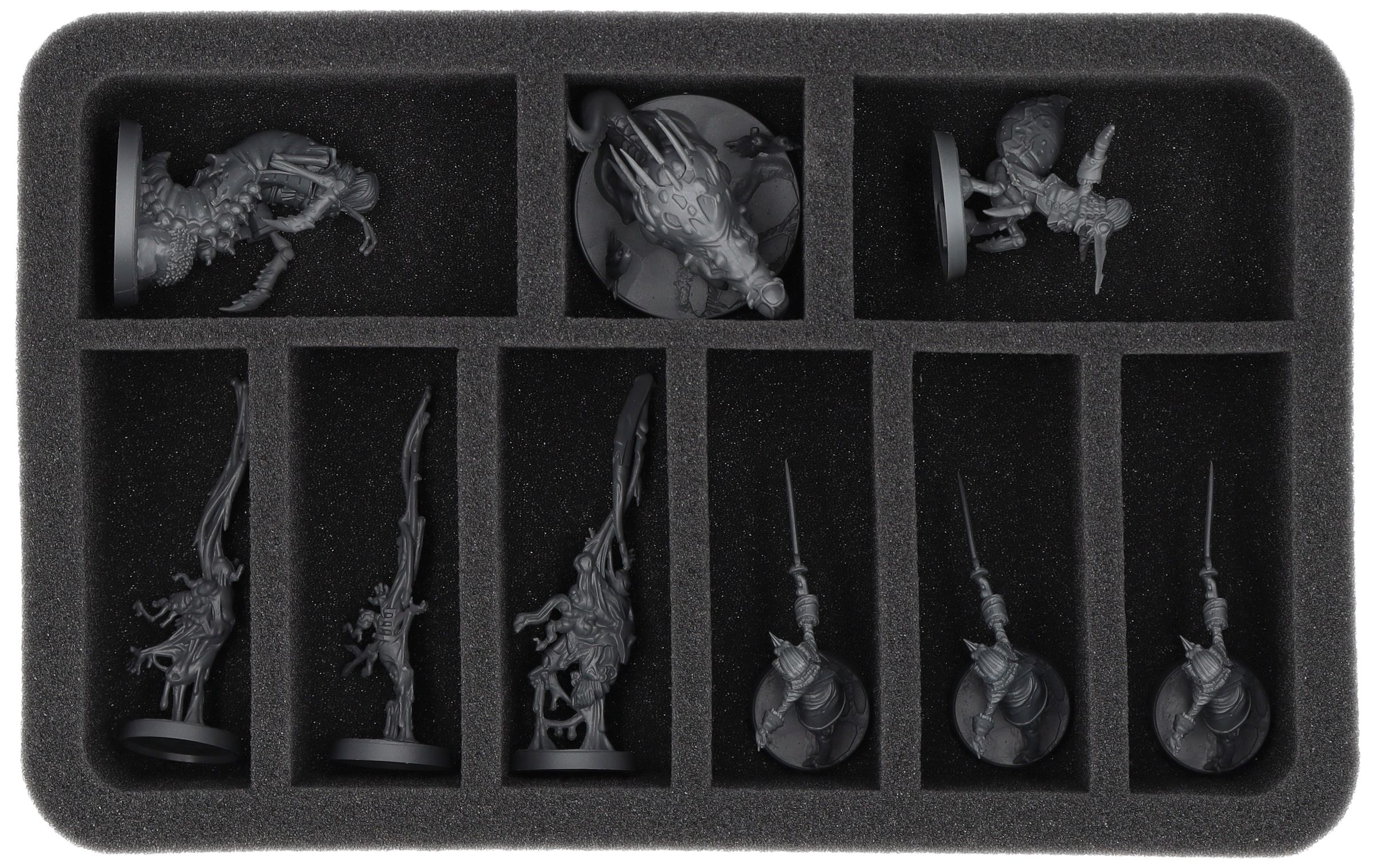 • 1 Half-Size foam tray with 9 compartments for medium sized miniatures (HS060I004BO)