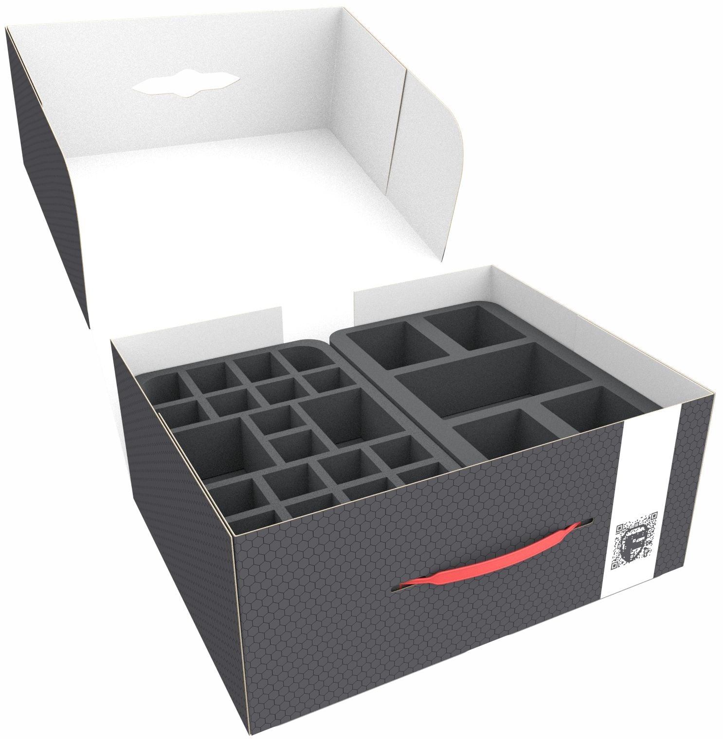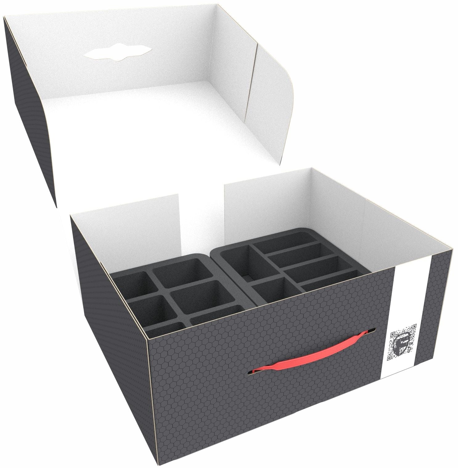 Your miniatures are optimally protected in this robust FSLB150 Storage Box. You can transport up to 42 miniatures safely to the gaming table in the custom-made Feldherr foam inserts.