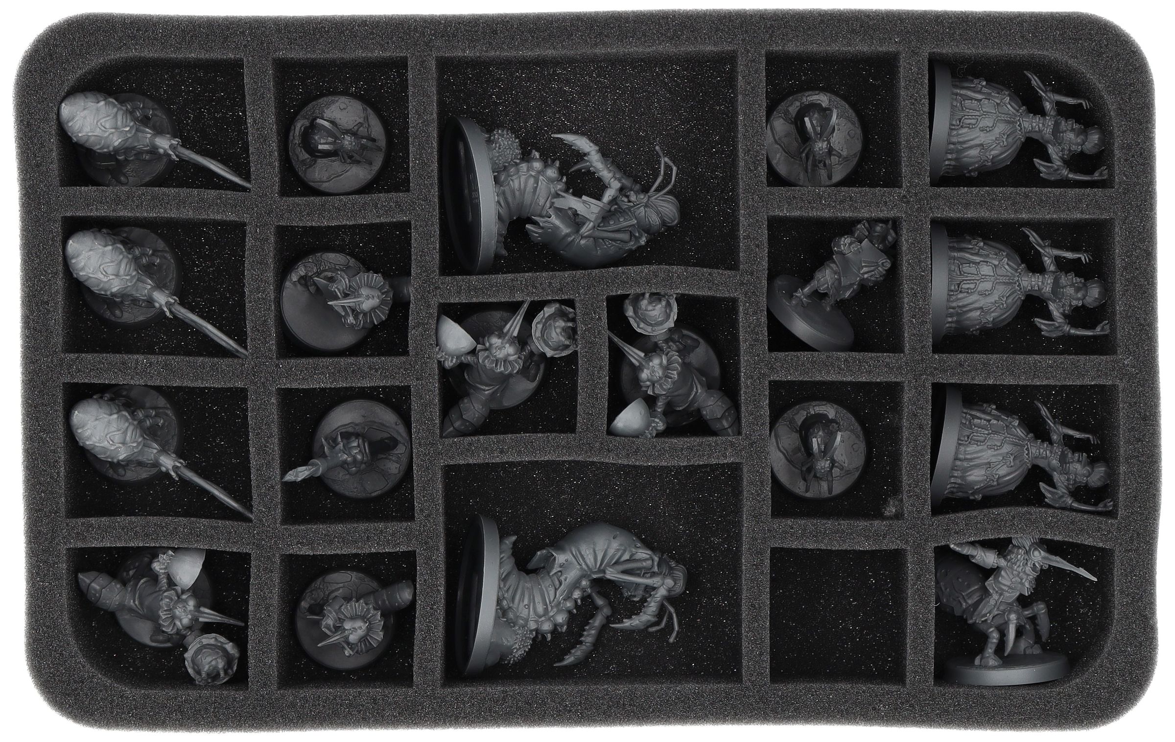 • 1 Half-Size foam tray with 20 compartments for small to medium sized miniatures (HSMEDN055BO)