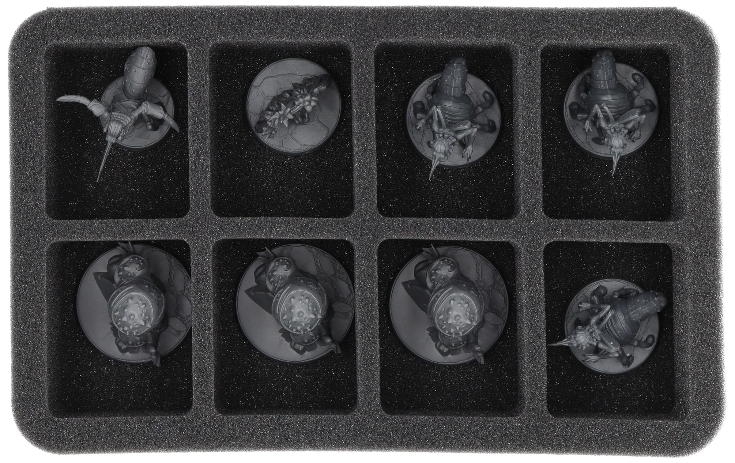 • 1 Half-Size foam tray with 8 compartments for medium sized miniatures (HS060BF02BO)