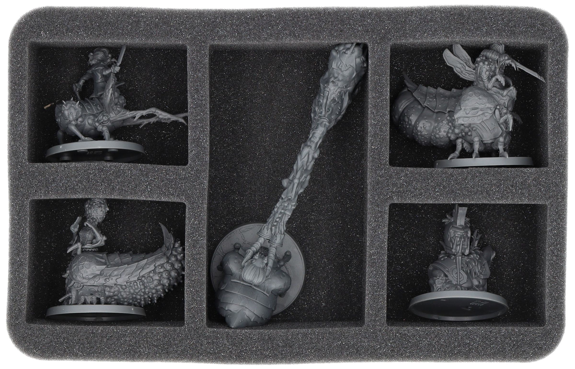• 1 Half-Size foam tray with 5 compartments for medium to large miniatures (HSMEJK060BO)