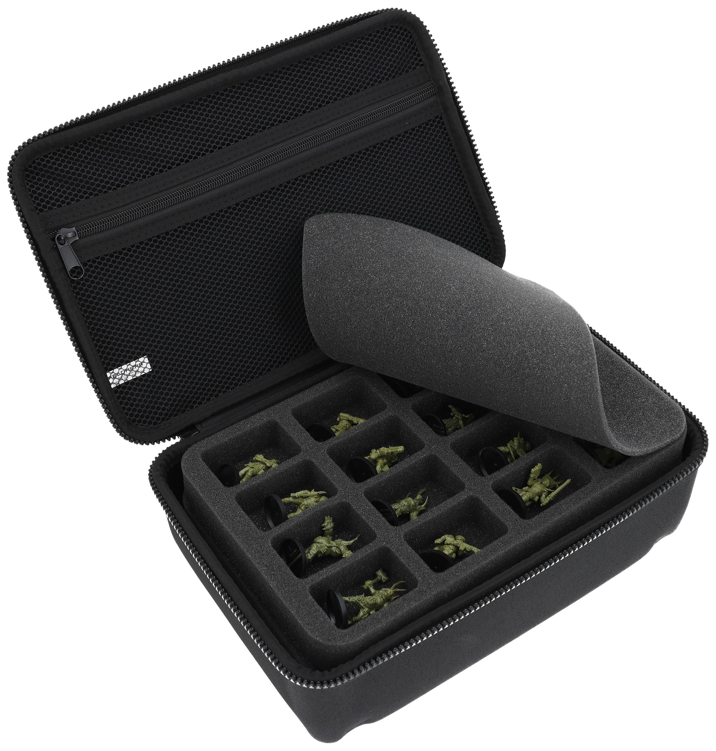 Custom-fit cut compartments reliably protect your miniatures from damage. The soft foam ensures that your painted units also arrive safely at the game table without scratches.