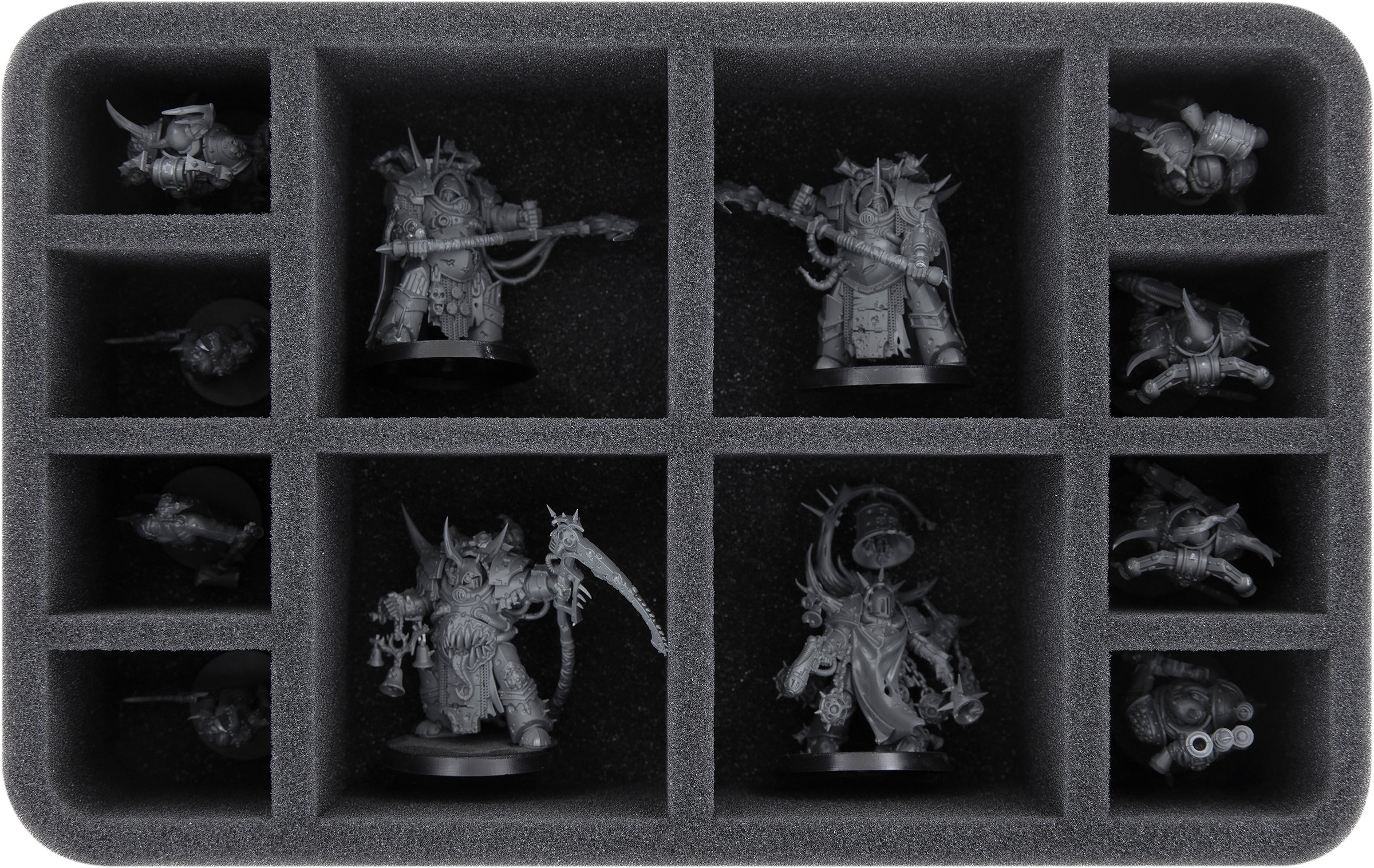 - 1 Half-Size foam tray with 12 compartments for Deathshroud Bodyguard, Blightlord Terminators, Plague Marines and models with similar dimensions (HS070A014)