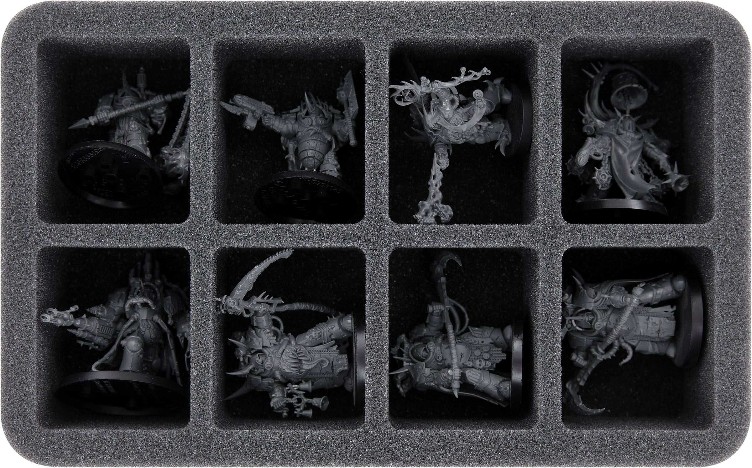 - 1 Half-Size foam tray with 8 compartments for Lord of Virulence, Deathshroud Bodyguards, Chosen of Mortarion and models with similar dimensions (HS060A044)