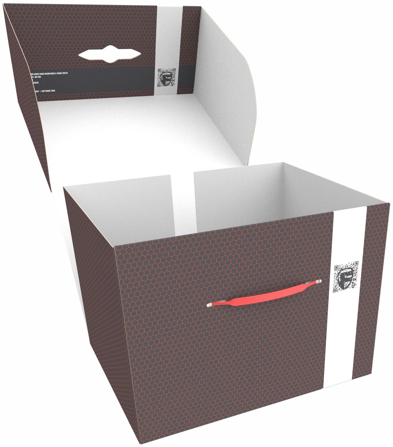 The FSLB250 Storage Box is made of coated, corrugated cardboard and is, therefore, very light on the one hand and particularly stable on the other. Thanks to the practical carrying handle, the box can be easily transported. One side of the box can be opened completely. This makes it easier to put in and take out the foam trays.