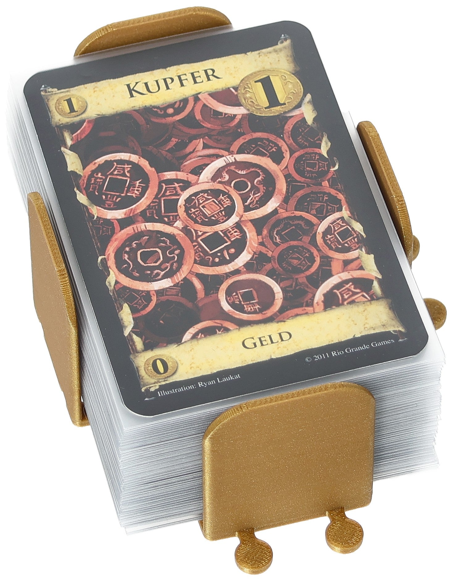 - The golden color of the card holder resembles the gold of the basic Treasure cards and improves the overview.
