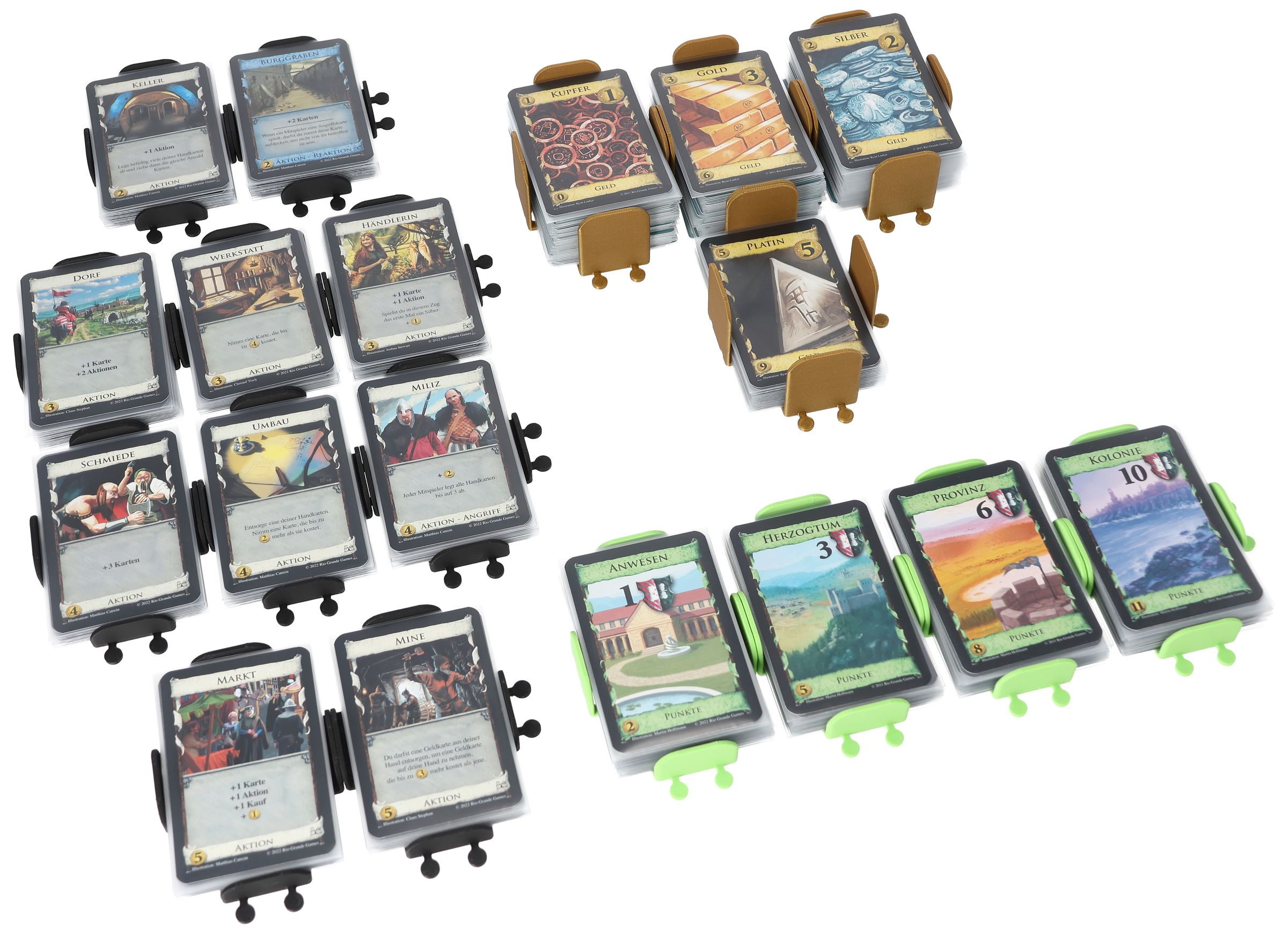 • The colors of the card trays are based on the colors of the Victory, Kingdom, Money and Curse cards and thus provide a better overview.
