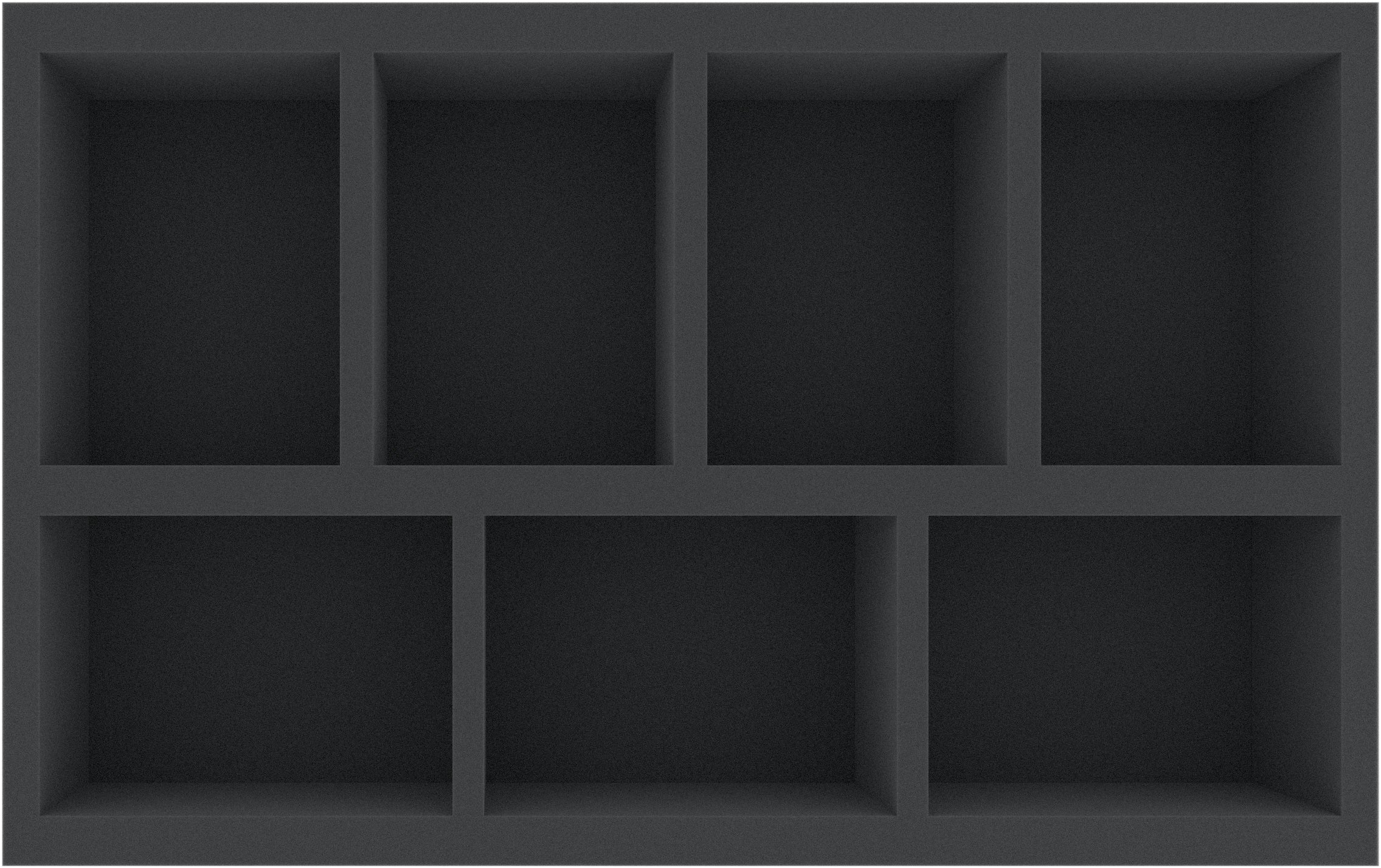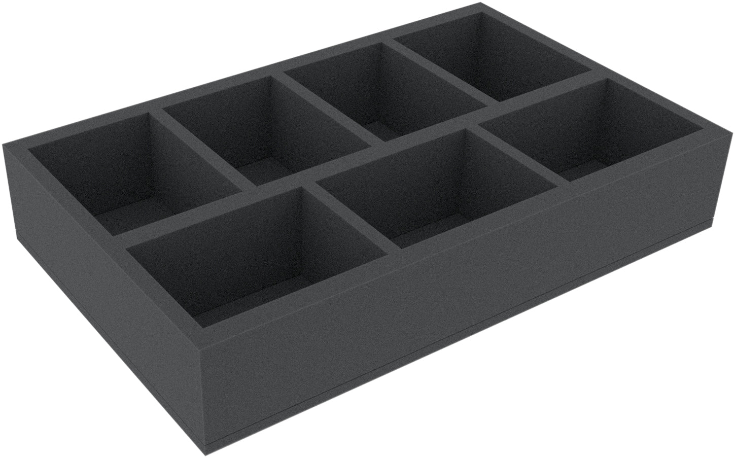This Double-Size foam tray is divided into 7 compartments. These compartments of the same size are ideal for safely storing large figures, such as vehicles, monsters or character models, for various board games and tabletop systems.