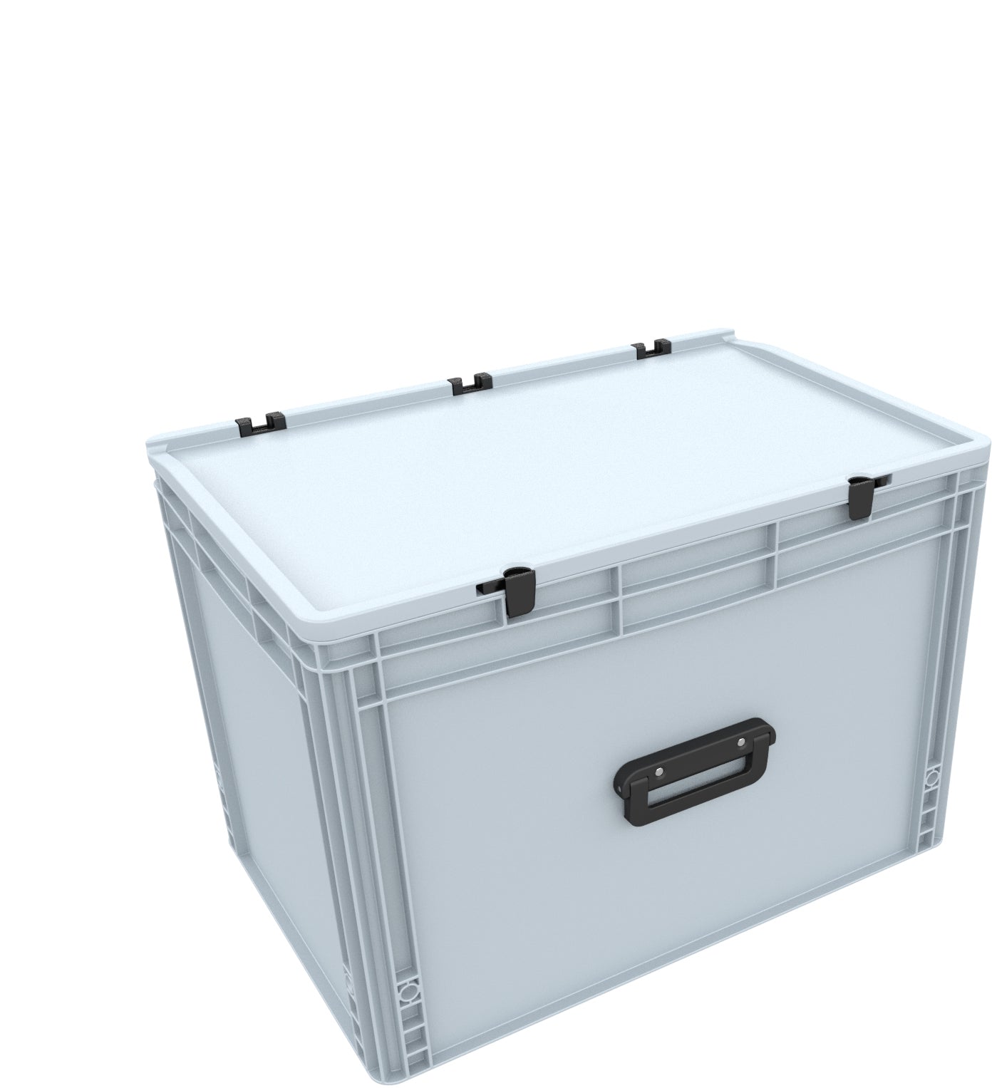 All-rounder with handle AUER Packaging's Euro container case has practical handles that enable the container to be carried safely and comfortably - even if the contents are heavy. To secure the contents, the lid can be locked with two hinges and two snap locks.