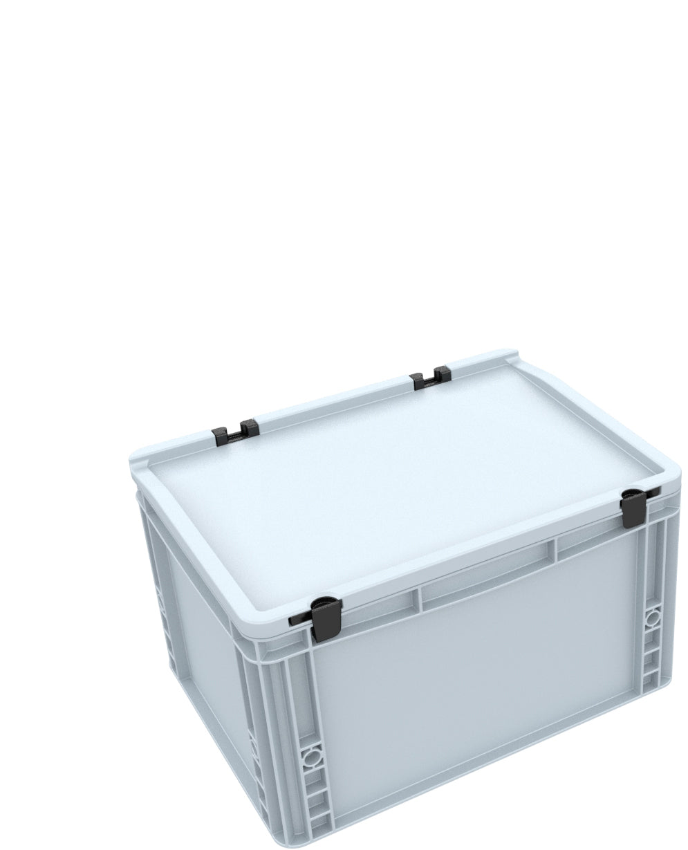 - Securely closed. AUER Packaging's hinge-lid Euro container can be closed in next to no time thanks to its easy-to-use hinge system. Your goods are thus optimally protected against transport damage and contaminations.