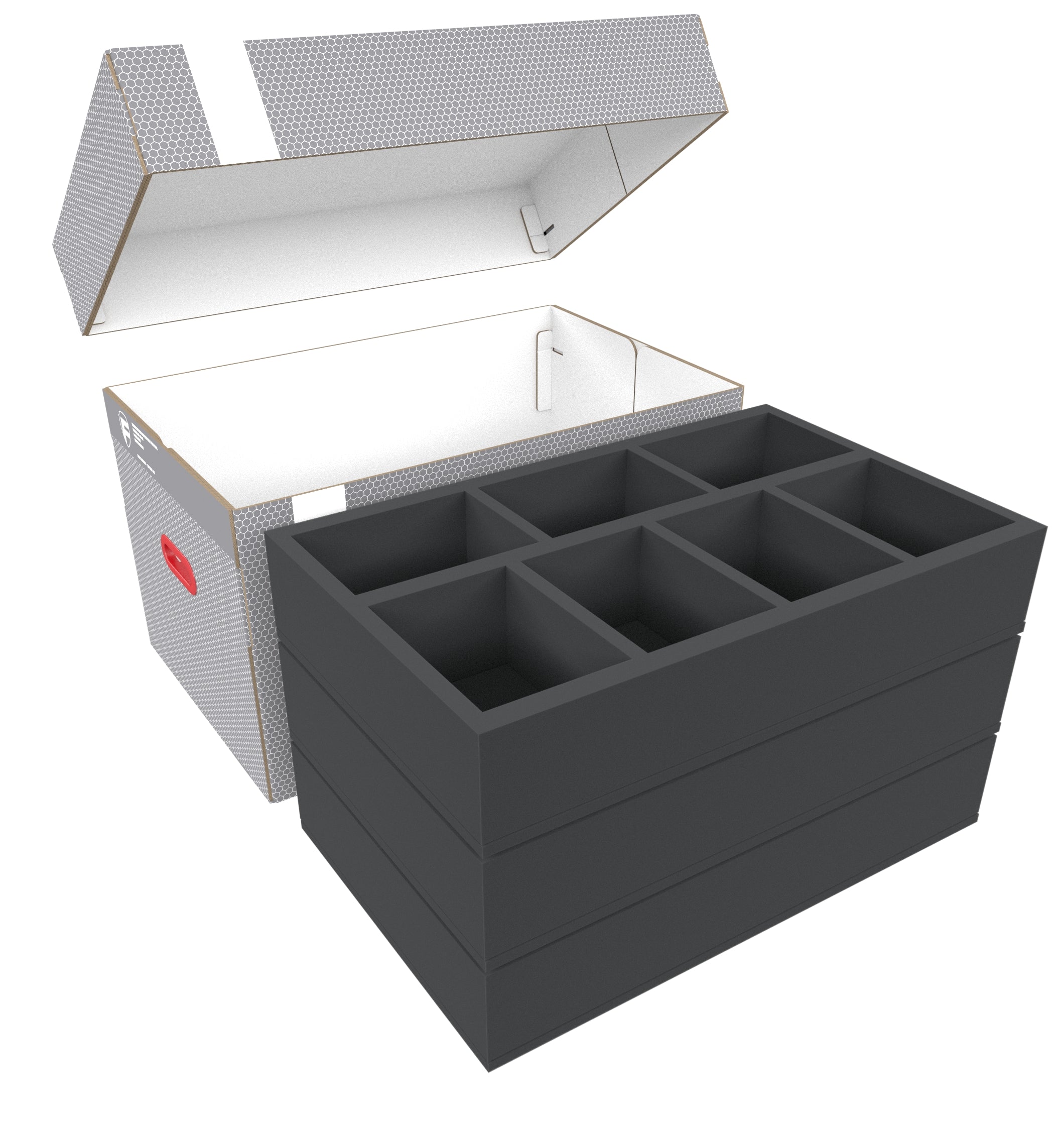 The package is rounded off with the matching foam topper. This ensures that the boxes in the upper insert are also protected from above.